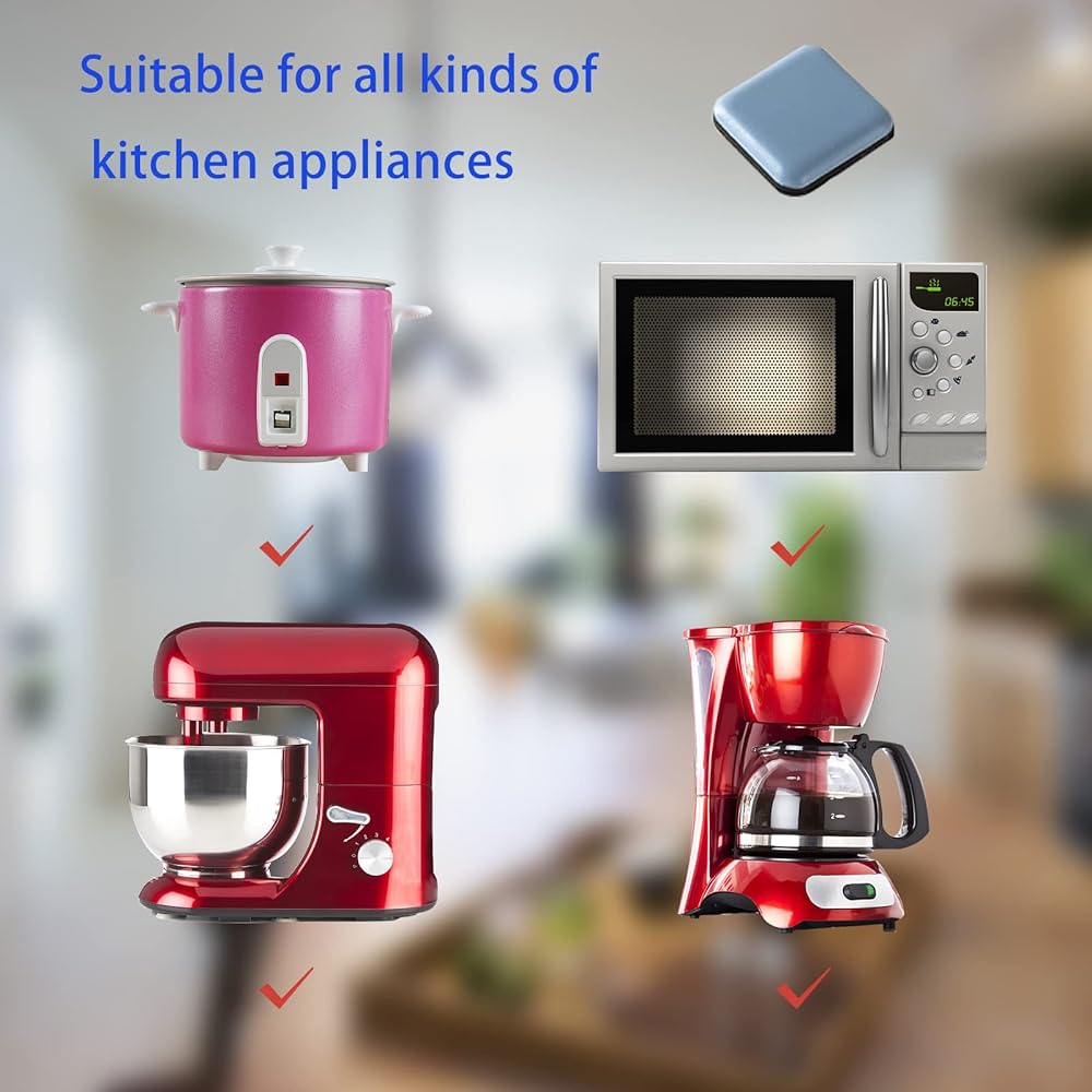 Wide Applications: durable self-adhesive durable household kitchen sliders for counter, with strong adhesion, can easily adhere to glass, wood, metal, plastic, widely used in heavy household appliances, such as airfryers, pressure cooker, coffee makers, blenders, cooking machines, bread machine etc. And it can also be used on other appliances, such as computer monitors, stools, chairs and cabinets, to facilitate movement without damaging the floor.