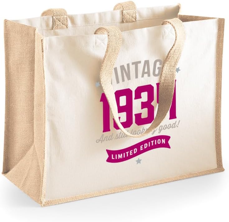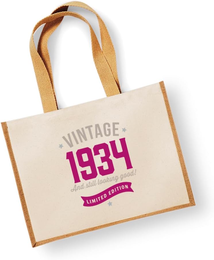 حقيبة هدايا عيد الميلاد التسعين حقيبة تذكارية عتيقة للنساء بعمر 90 عامًا حقيبة تسوق جديدة 13 بوصة × 16.5 بوصة × 7.5 بوصة (طبيعية، عتيقة)
