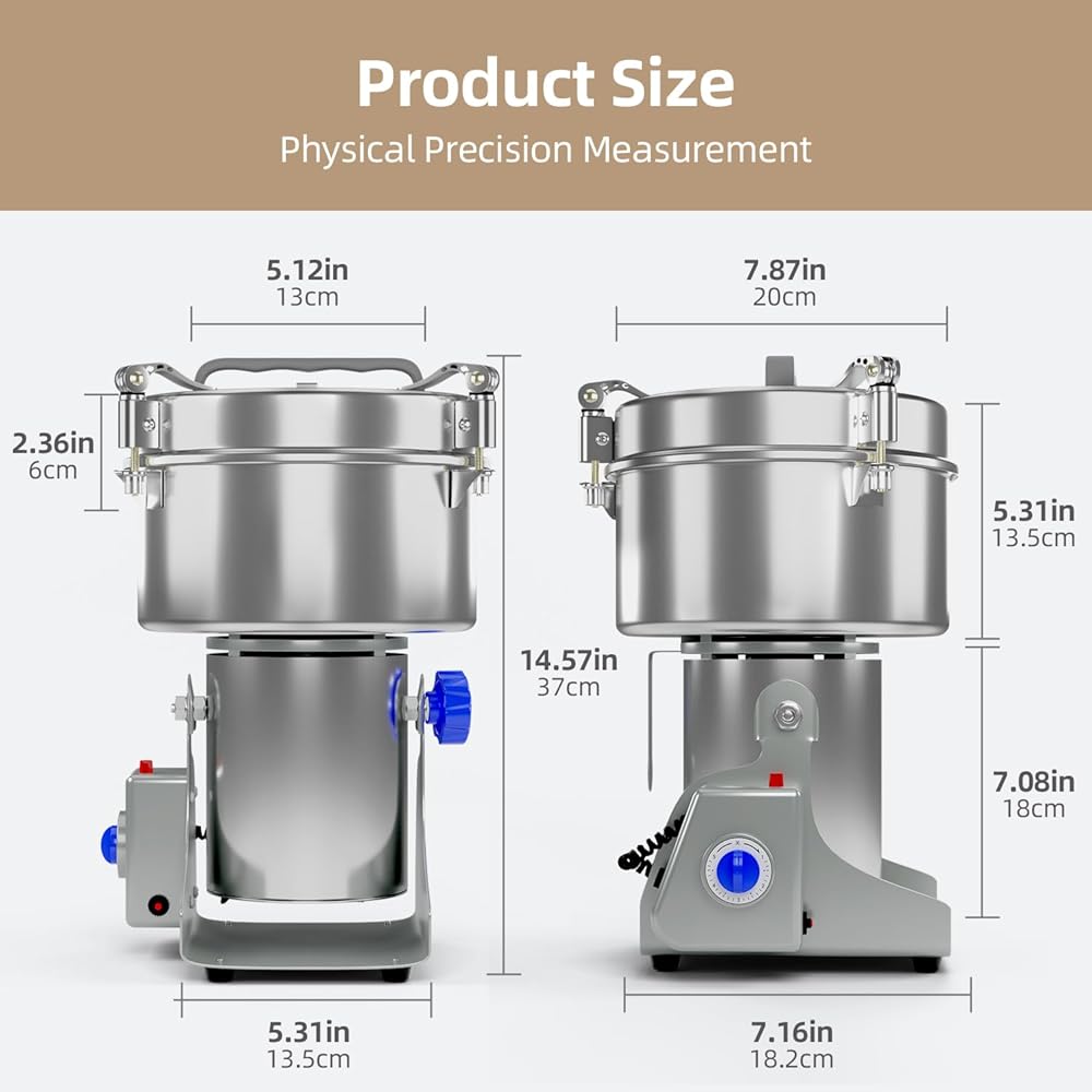 【طحن فعال】بسعة 150 جرام، وقوة 950 وات، وسرعة 28000 دورة في الدقيقة، تستخدم المطحنة شفرة ثلاثية الأوراق للحصول على مسحوق فائق النعومة من 50 إلى 300 شبكة في دقيقة واحدة فقط (قد تستغرق المواد الصلبة وقتًا أطول. ). من الطبيعي أن ترتفع درجة حرارة الماكينة قليلاً بسبب الطحن عالي السرعة في مكان مغلق.
