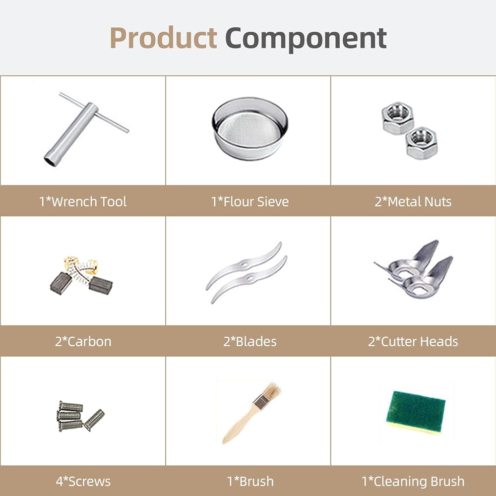【ملاحظات مهمة】نظرًا لأن المطحنة تستخدم محركًا مصقولًا، فمن الطبيعي رؤية الشرر والضوء وبعض الدخان حول منطقة المحرك. سوف يختفي هذا بعد استخدام الجهاز عدة مرات. إذا كانت هناك رائحة خلال الاستخدامات القليلة الأولى، يمكنك طحن بعض الأرز أو الشاي الجاف للتخلص منها.