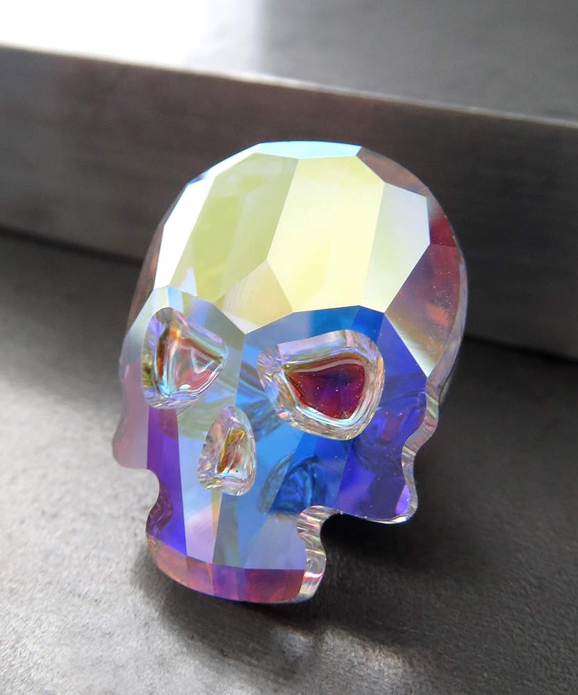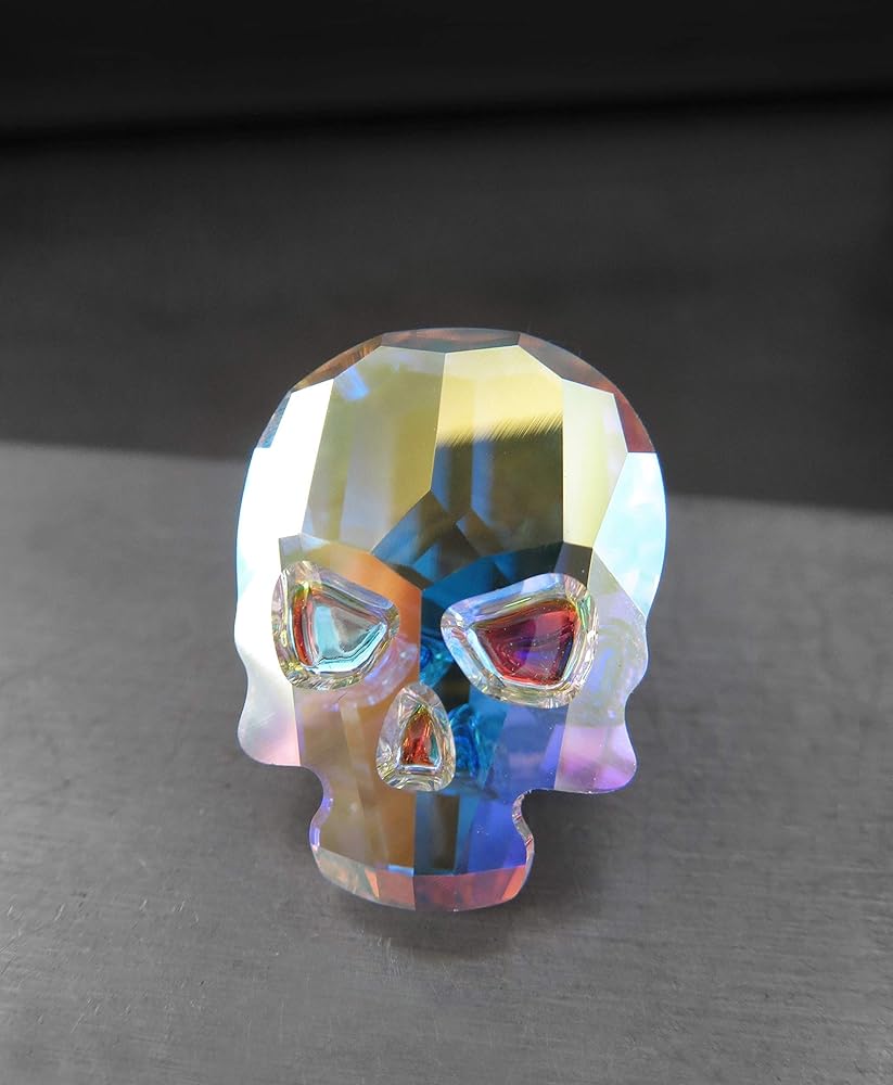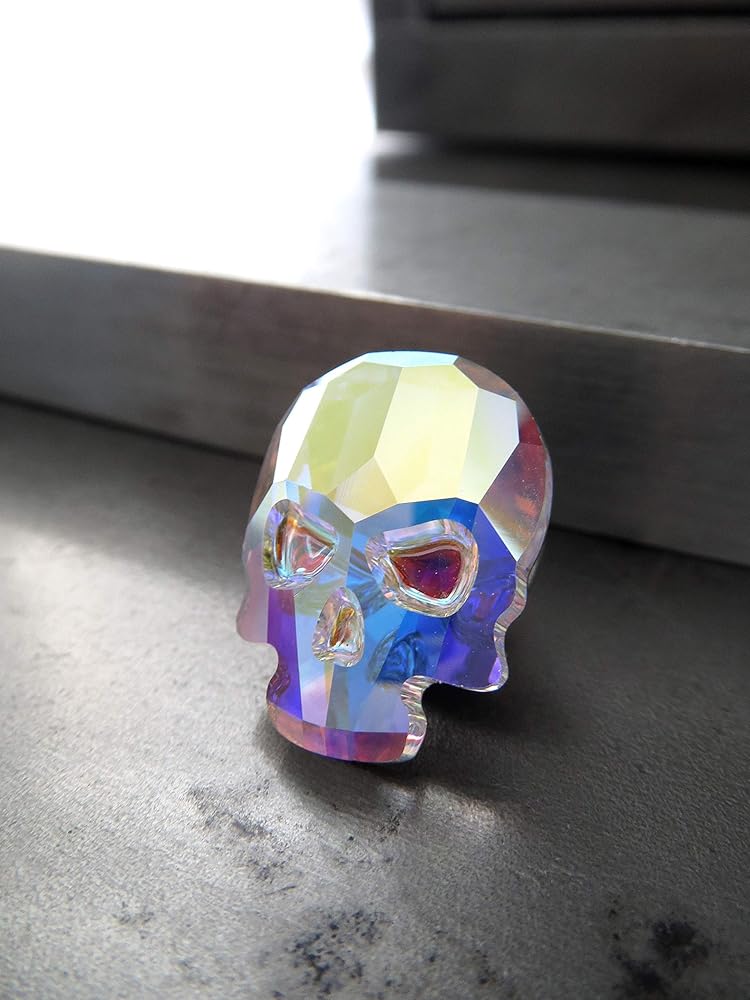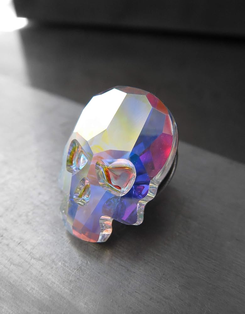 Subtle, little badass bling for your groomsmens' ties, or to dress up your overcoat, bag, hat or scarf, or for use as a fantastic tie tack. The unparalleled quality & faceting of premium Austrian crystal brings these amazing crystal skulls to life with light & movement! The 'Crystal AB' color has an amazing shimmering, iridescent "Aurora Borealis" finish, which sparkles in soft flashes of all hues of the rainbow: yellow, blue, green, pink, purple... Plated base metal pin post & locking pin back to help prevent pin-loss!