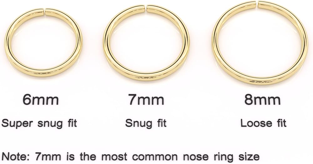 خاتم أنف من الذهب الخالص عيار 14 قيراط - طوق أنف مقاس 22 مقاسًا - 6 مم 7 مم 8 مم - مجوهرات ثقب الغضروف (القطر الداخلي: 8 مم)