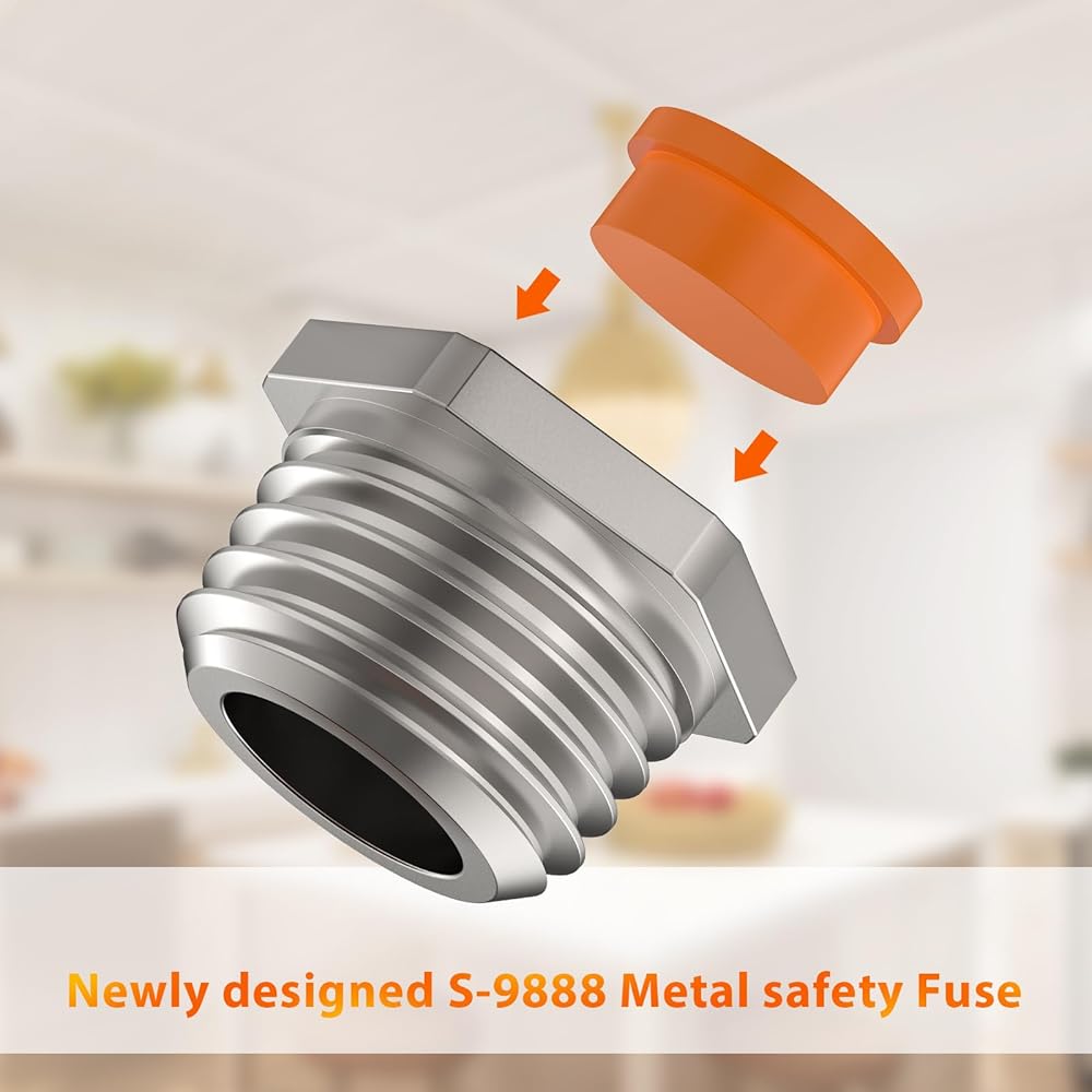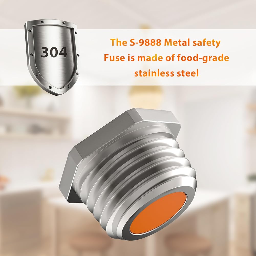 • ❄Brand New Design: In older safety fuse, a soft metal core within the plug would melt if pressure exceeded safe levels. The brand new design replaces this with a small red rubber plug at the center of the screw-in fuse, which will dislodge if pressure becomes too high.