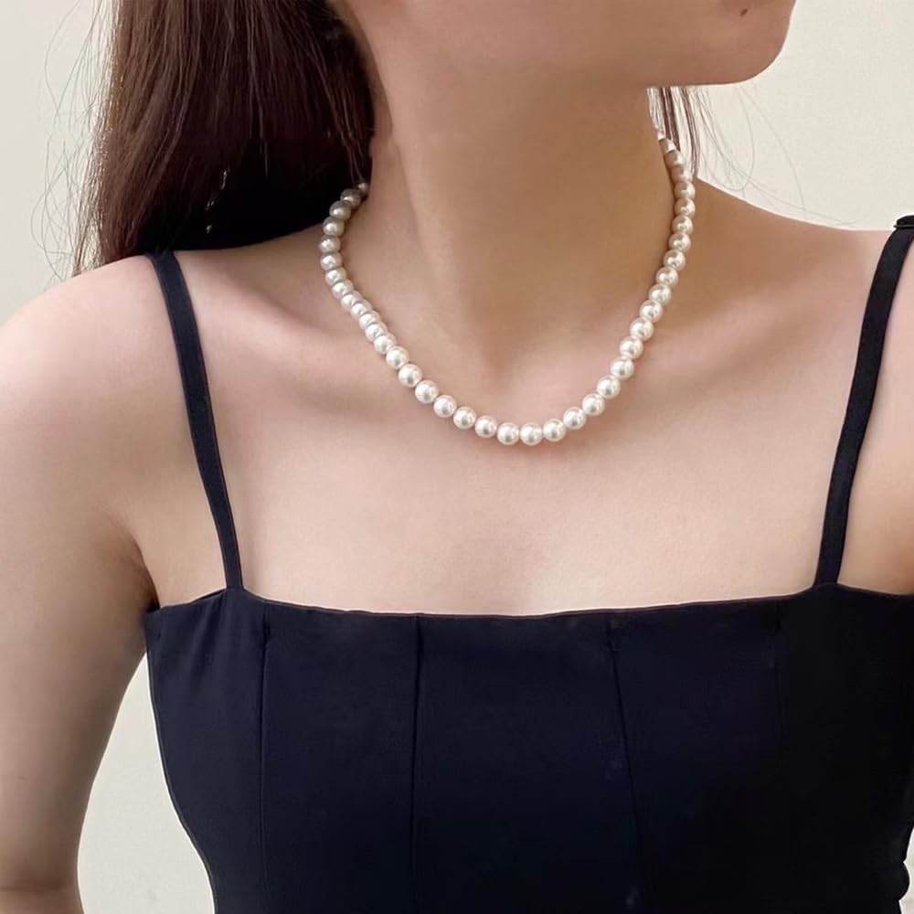 • 【PEARL NECKLACE】Strung with round, full and lustrous pearls. Women who wear it will look elegant and fashionable.Excellent luster and smooth surface, are almost perfectly round, represent the finest quality.