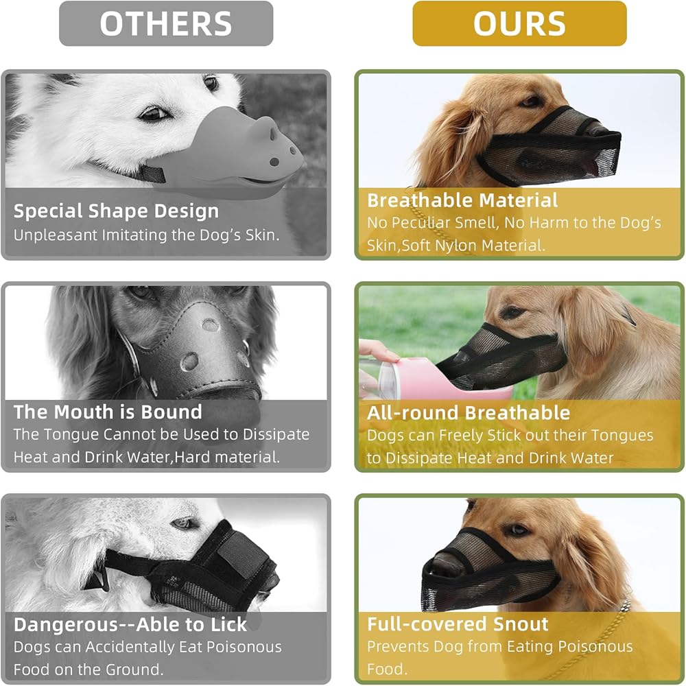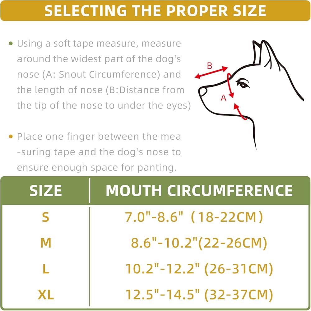 خدمة تنبيه: يرجى الرجوع إلى الرسم البياني وتعليمات القياس عند اختيار المقاس. قد تكون المرة الأولى التي ترتدي فيها الكلب مقاومة بعض الشيء، يرجى اتباع التعليمات حتى يعتاد الكلب على الكمامة تدريجيًا. إذا كانت لديك أي صعوبات في العثور على المقاس الصحيح، فسنقدم دعم العملاء وسنعمل بجد لحل مشكلتك.