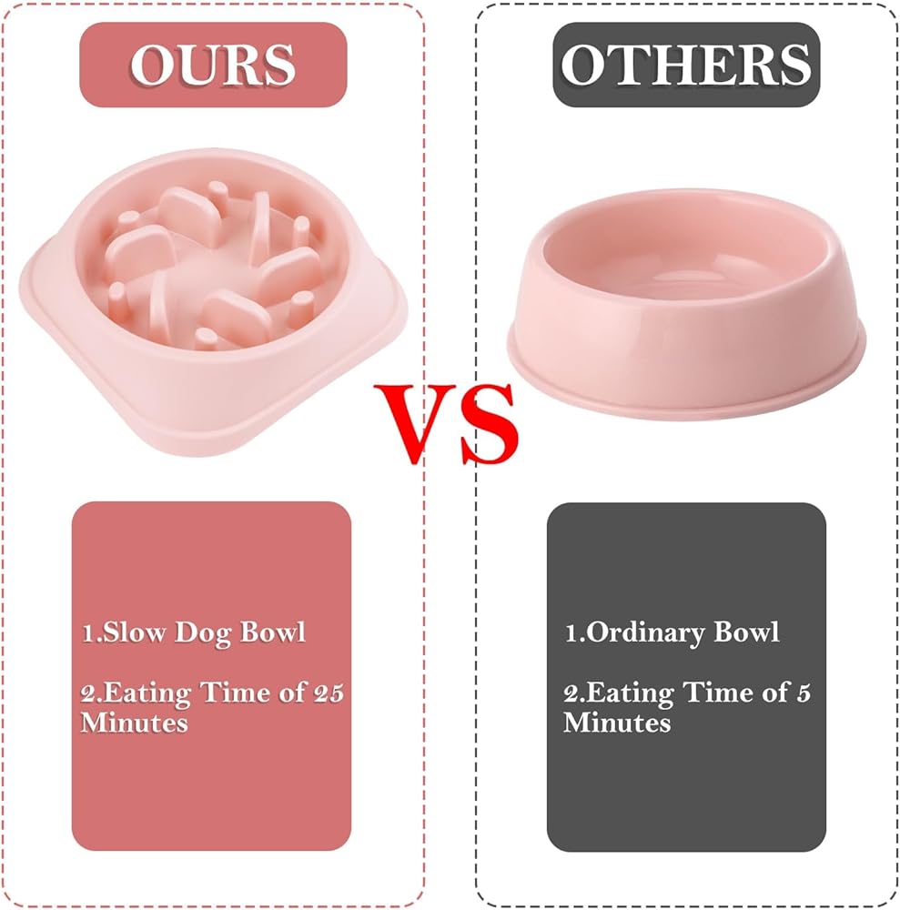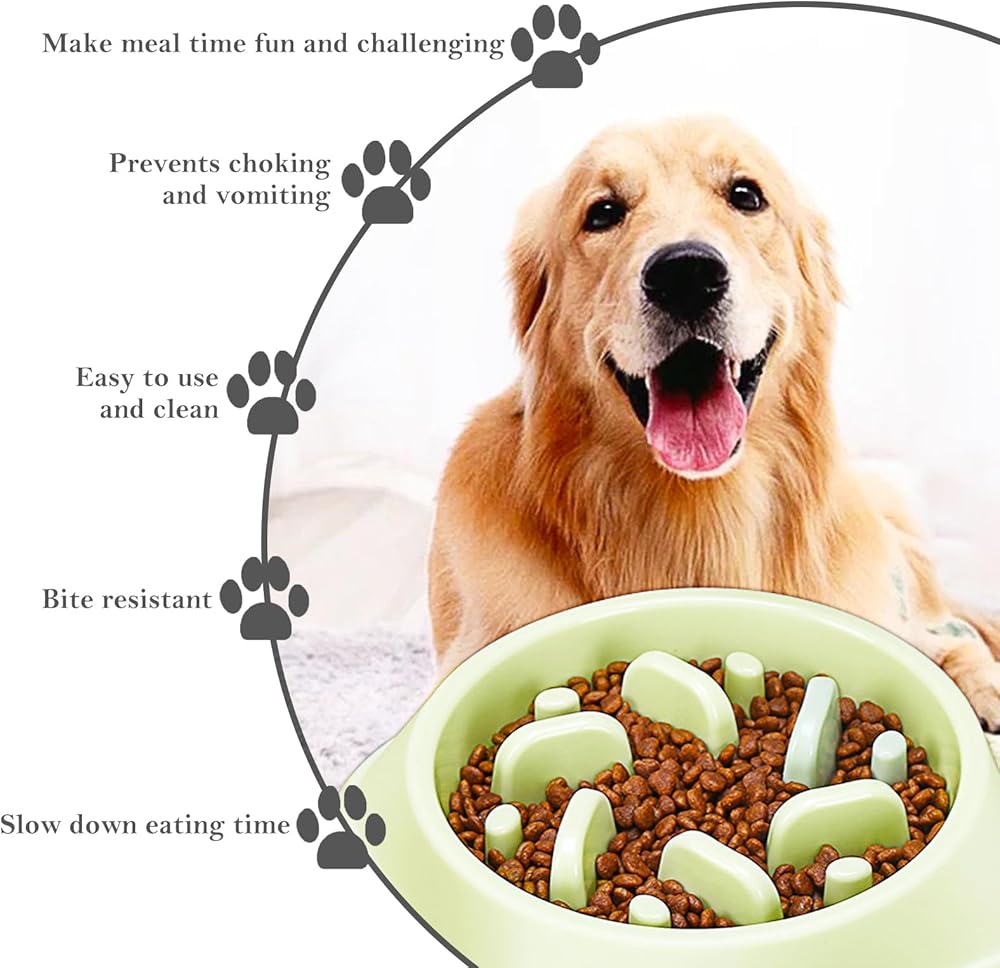 Slow feeding dog bowls efficiently prevent overeating, choking, and vomiting, promote good eating behavior, and add challenge and fun to mealtime while reducing the risk of bloat, regurgitation, and indigestion.