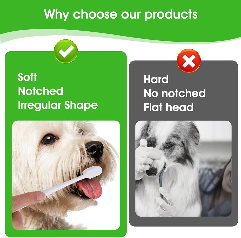 • 【Healthy Material】Our toothbrush for dogs are made of environmentally friendly plastic, it safely cleans your dog's teeth, providing peace of mind when brushing your furry child's teeth.