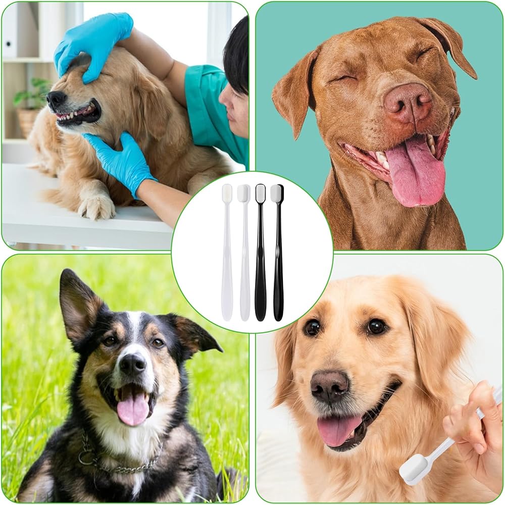 فرشاة أسنان للكلاب، 4 قطع ناعمة لتنظيف أسنان الكلاب، فرشاة أسنان للكلاب بمقبض طويل، فرشاة أسنان للحيوانات الأليفة عالمية لتنظيف أسنان الكلاب الأليفة والعناية بالفم ونظافة الأسنان (أسود، أبيض)