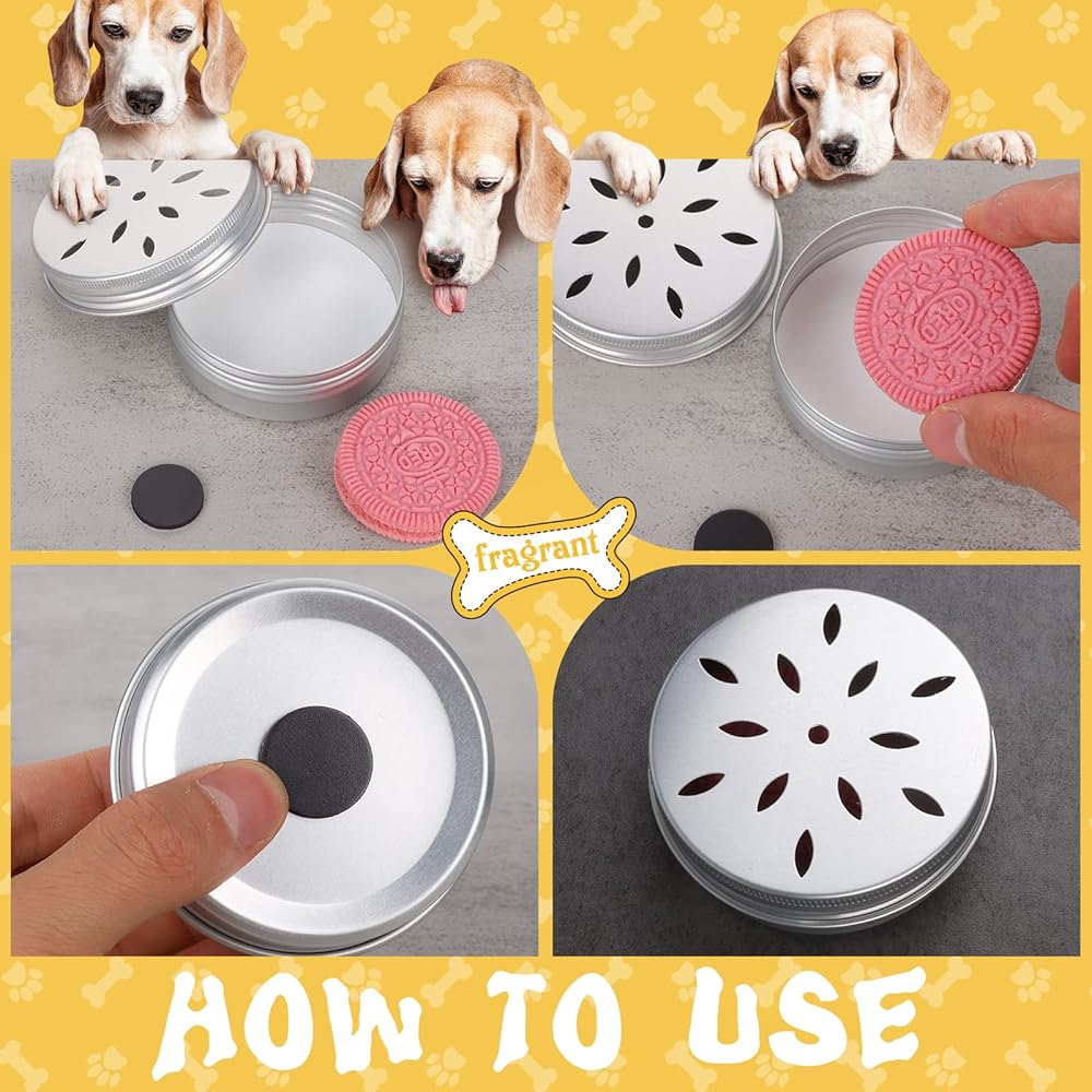 You can put the scent you want your dog to recognize inside or put different foods in a dog can, so that they can find and give rewards during your dog's investigation.