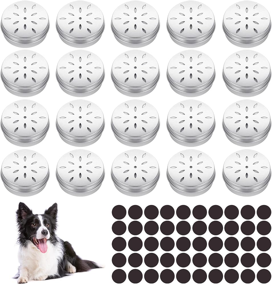 20 عبوة من علب عمل رائحة الكلاب، مجموعة حاويات تدريب أنف الكلاب مع 50 نقطة مغناطيسية، صندوق تدريب على رائحة الألومنيوم بوزن 2 أونصة مع أغطية مجوفة، صندوق مزيل العرق للثلاجة المستديرة مع غطاء لولبي