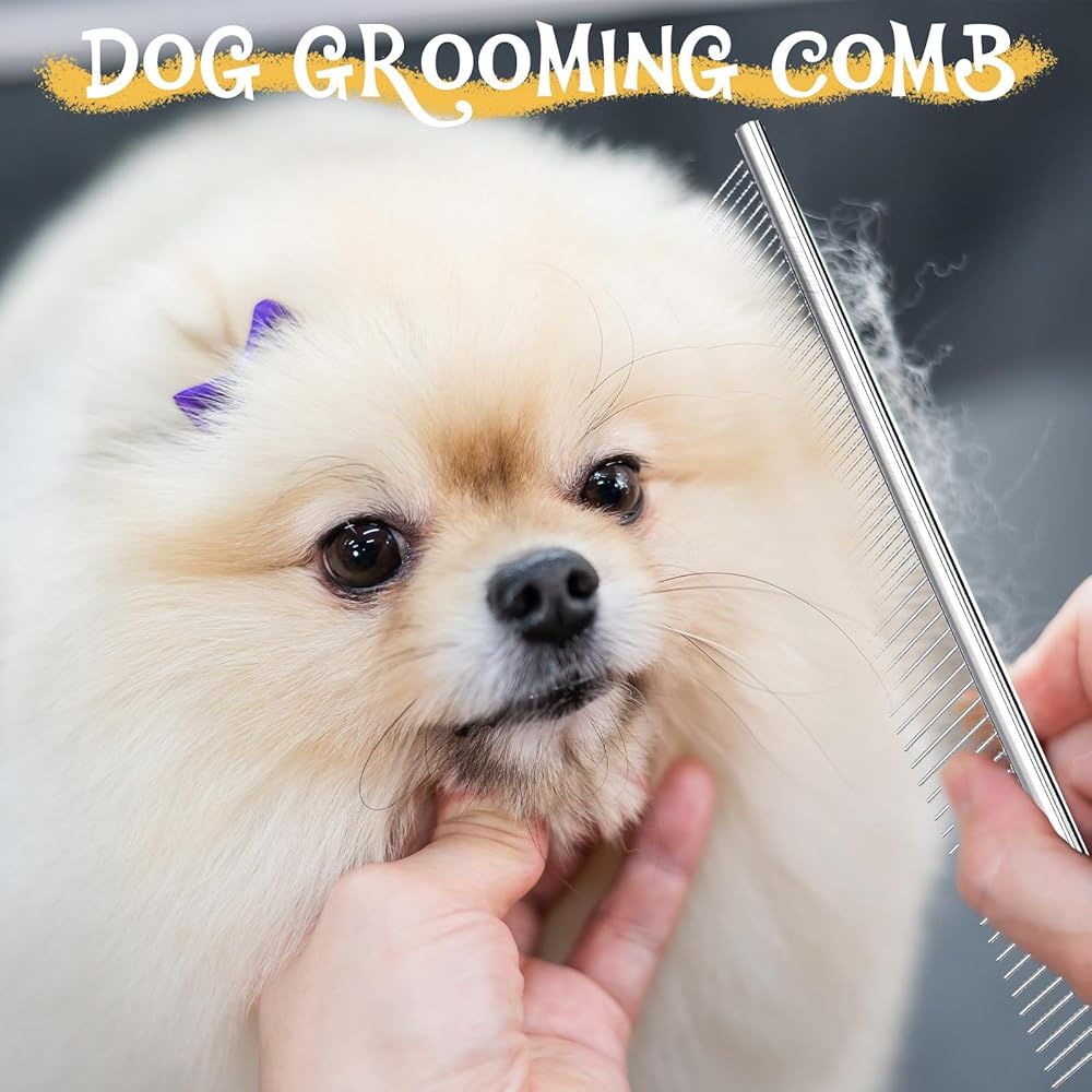 6 قطع من أمشاط الكلاب بأسنان من الفولاذ المقاوم للصدأ، مشط للقطط لإزالة التشابك والعقد، أداة احترافية للعناية بالكلاب ذات الشعر الطويل والقصير والقطط والحيوانات الأليفة الأخرى