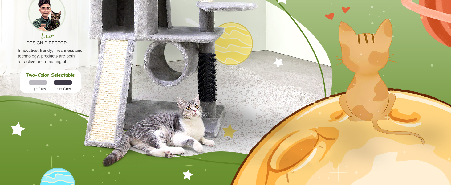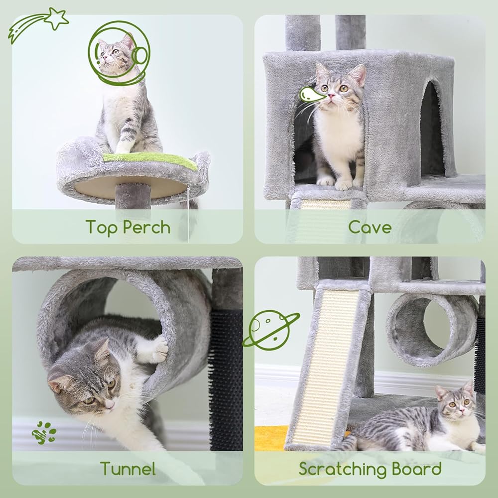 المجثم العلوي: يعتبر المجثم العلوي "على شكل الأذن" "Cat Lookout" المكان المثالي لالتقاط القطط الشجاعة. وسائد خضراء مصممة خصيصًا، تسمح للقطط التي يمكنها رؤية اللون الأخضر بملاحظة ذلك وجعله هدف التسلق.