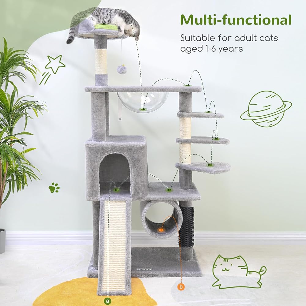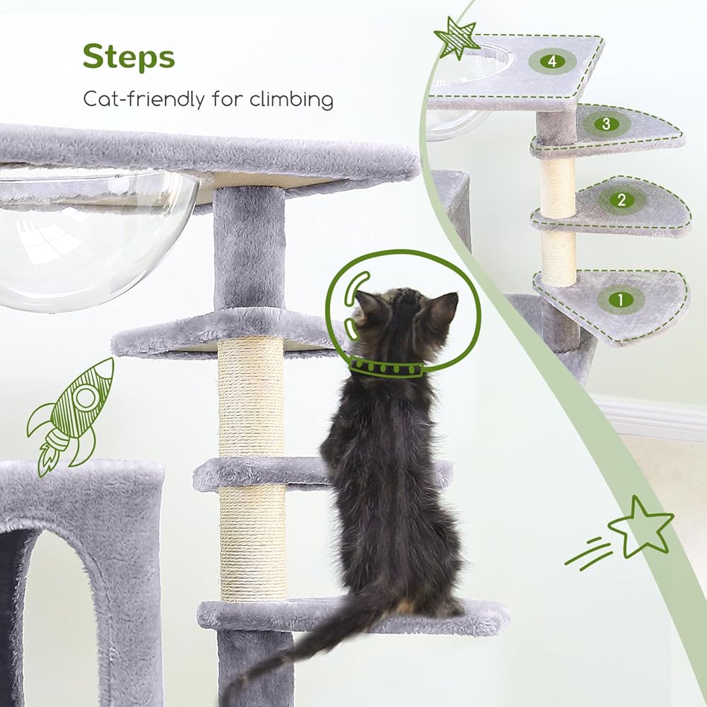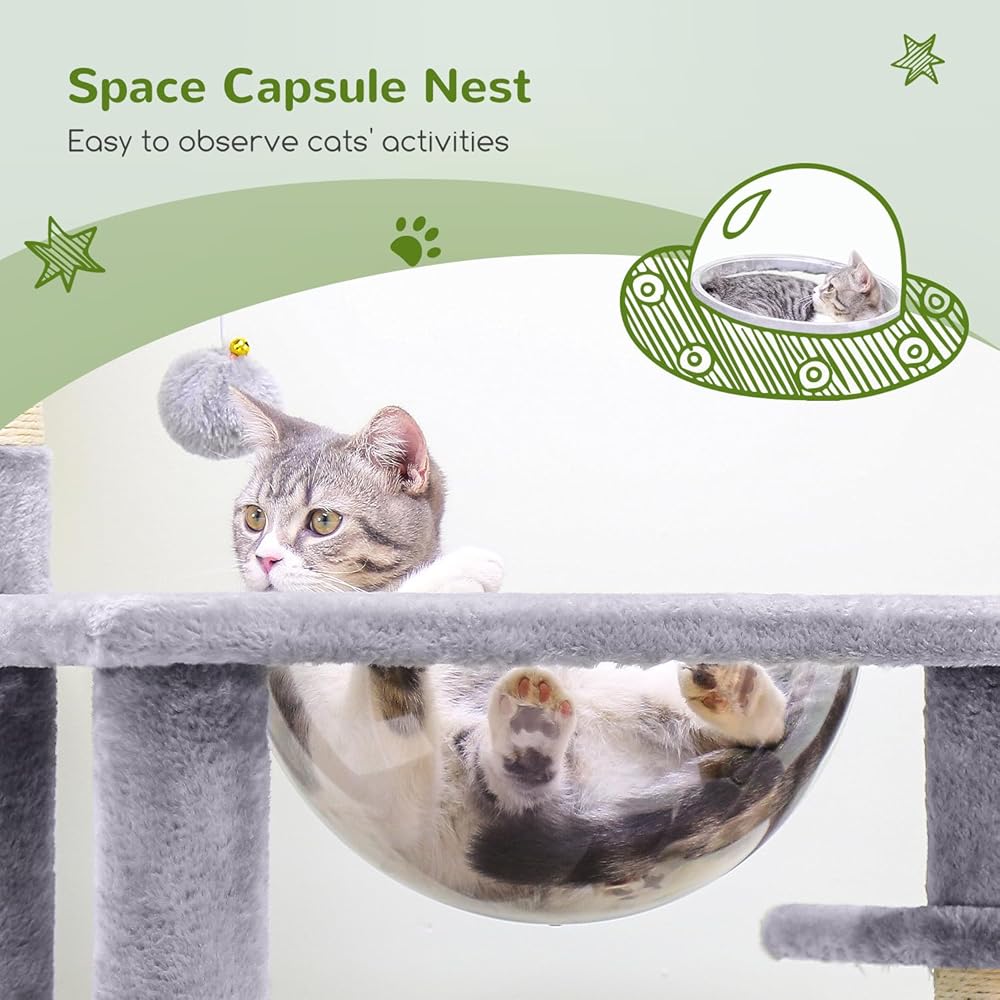 المفضلة للقطط الشجاعة: تستمتع القطط الشجاعة بالنوم في كبسولة الفضاء الشفافة، والتي توفر رؤية 360 درجة وملاءمة تامة لمنحنيات جسمها، مما يضمن نومًا مريحًا. تأتي كبسولة الفضاء المجهزة بشجرة القطط بمكونات مثبتة مسبقًا لسهولة التجميع والاستخدام الفوري.