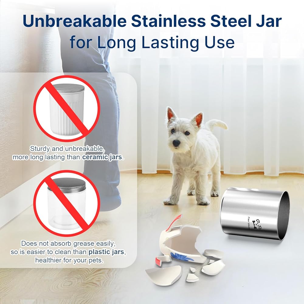 سهلة التنظيف وديكور رائع: مجرد غسل أو مسح بسيط، من السهل الحفاظ على نظافة حاوية علاج الحيوانات الأليفة من أجل صحة حيوانك الأليف المحبوب. يتناسب التصميم الأنيق تمامًا مع طاولات مطبخك أو محطات الحيوانات الأليفة أو طاولات وحدة التحكم، مما يعزز ديكور منزلك بينما يخدم غرضه العملي.