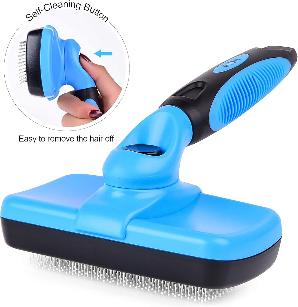 ★ سهلة الاستخدام والتنظيف - عندما تقوم بتصفيف حيوانك الأليف، ما عليك سوى الضغط على زر التنظيف الذاتي وستتراجع الشعيرات مرة أخرى إلى الفرشاة، مع ترك الشعر الموجود على الشعيرات. اجعل الأمر بسيطًا للغاية لإزالة كل الشعر من الفرشاة.