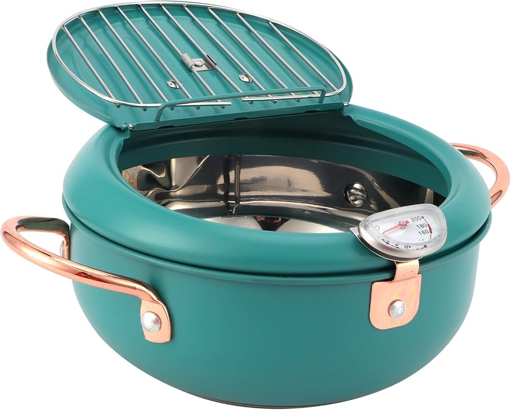 مقلاة عميقة مع سلة بتصميم مقبض بارد الملمس، تمنع بشكل فعال الحروق والعزل الحراري، مناسبة للقلي.