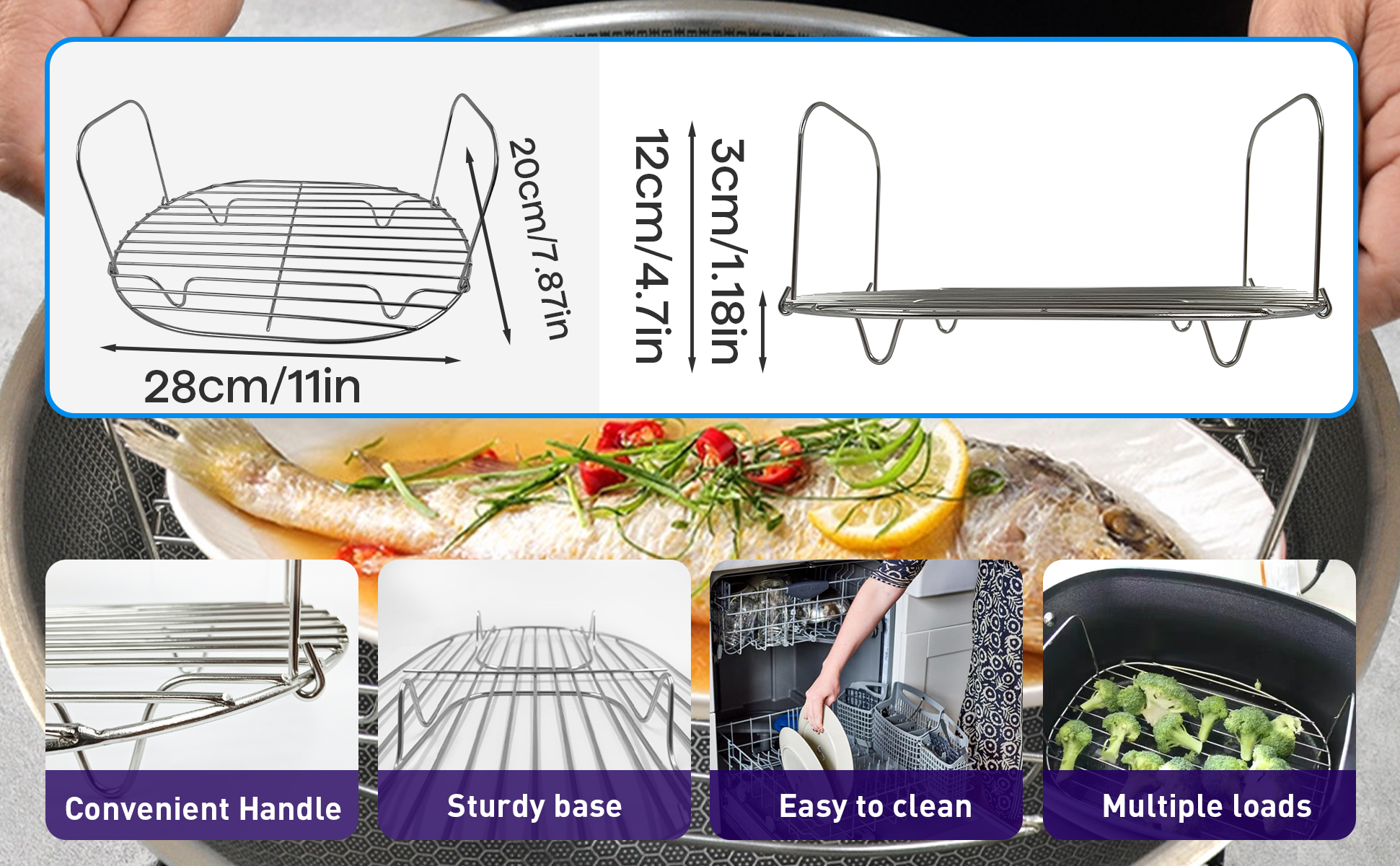 مقابض قابلة للتعديل لسهولة التعامل - تتميز بمقابض قابلة للتعديل لمزيد من الراحة، رف البخار والشواء هذا يناسب وعاء النينجا الفخاري مما يضمن قبضة آمنة وسهولة المناورة.