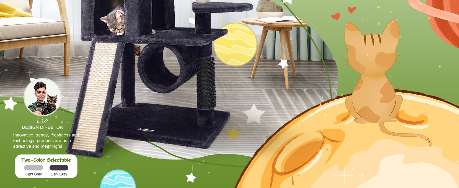 المجثم العلوي: يعتبر المجثم العلوي "على شكل الأذن" "Cat Lookout" المكان المثالي لالتقاط القطط الشجاعة. وسائد خضراء مصممة خصيصًا، تسمح للقطط التي يمكنها رؤية اللون الأخضر بملاحظة ذلك وجعله هدف التسلق.
