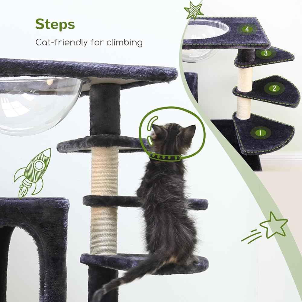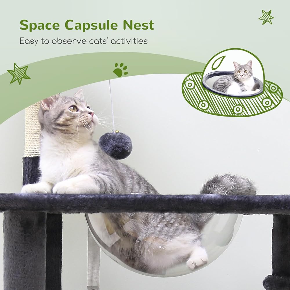 المفضلة للقطط الشجاعة: تستمتع القطط الشجاعة بالنوم في كبسولة الفضاء الشفافة، والتي توفر رؤية 360 درجة وملاءمة تامة لمنحنيات جسمها، مما يضمن نومًا مريحًا. تأتي كبسولة الفضاء المجهزة بشجرة القطط بمكونات مثبتة مسبقًا لسهولة التجميع والاستخدام الفوري.