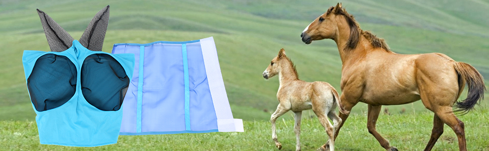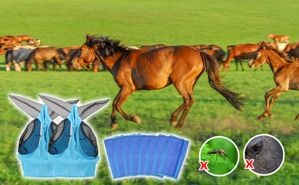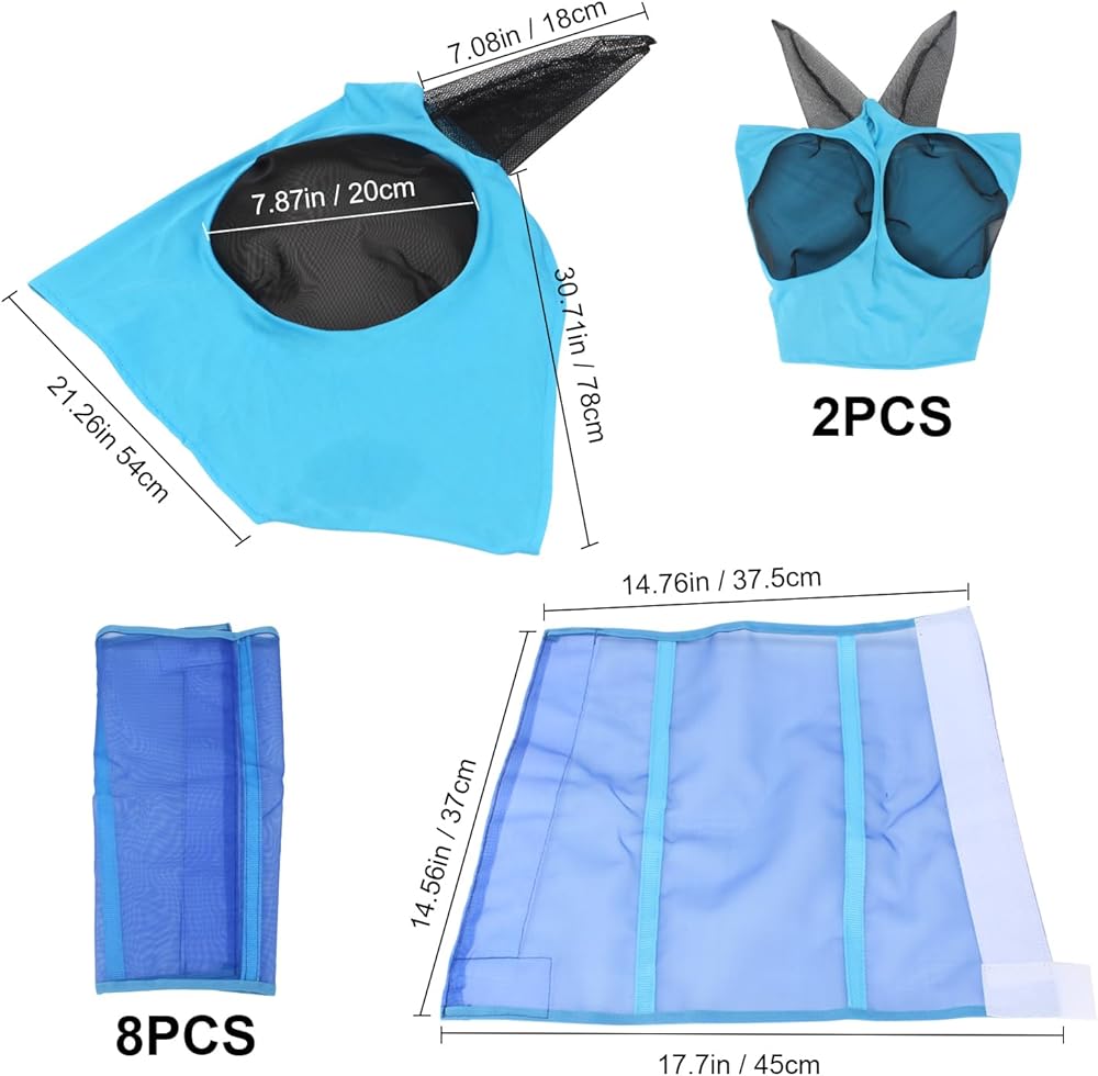 • حماية التغطية الكاملة: تتضمن مجموعة مستلزمات الحصان 8 أحذية ذباب شبكية و2 قناع ذباب يوفر حماية كاملة لخيولك ضد الذباب والحشرات.