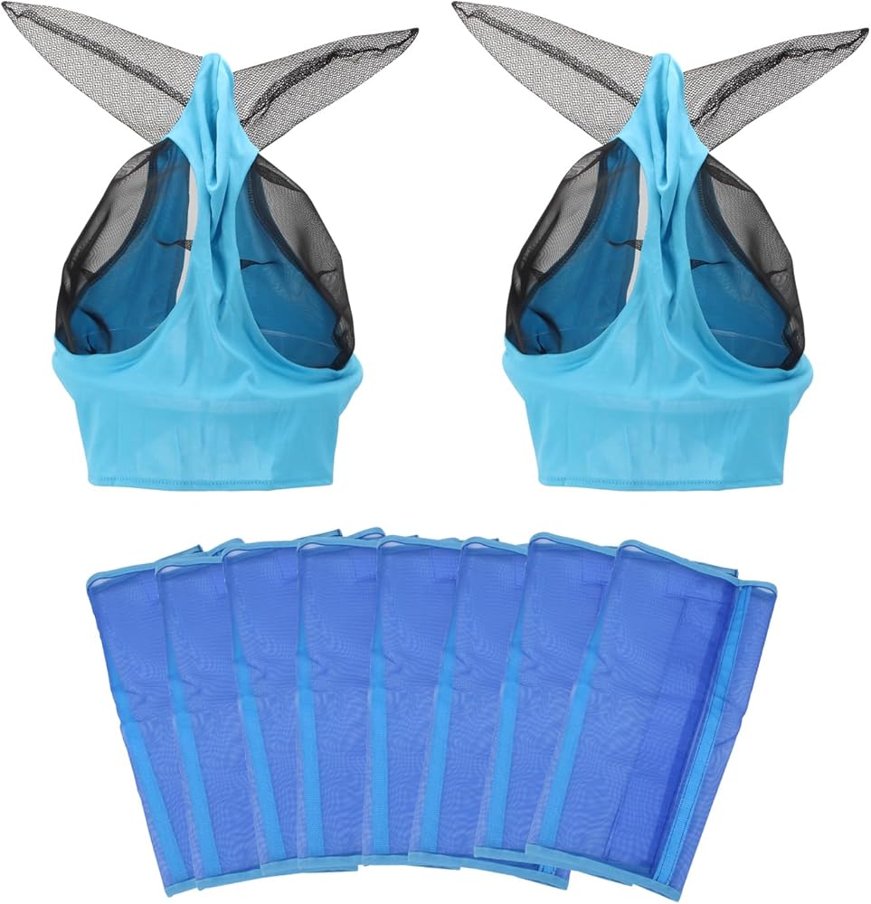 10 قطع من لوازم الحصان، 8 قطع من أحذية الطيران الشبكية و2 قطعة من أقنعة الذبابة مع مجموعة الأذنين، أقنعة الذبابة مع الأذنين ناعمة، واقية من طماق الحصان الشبكية المسامية لمنع لدغات الذباب المؤلمة