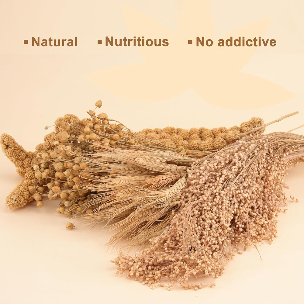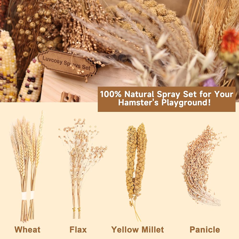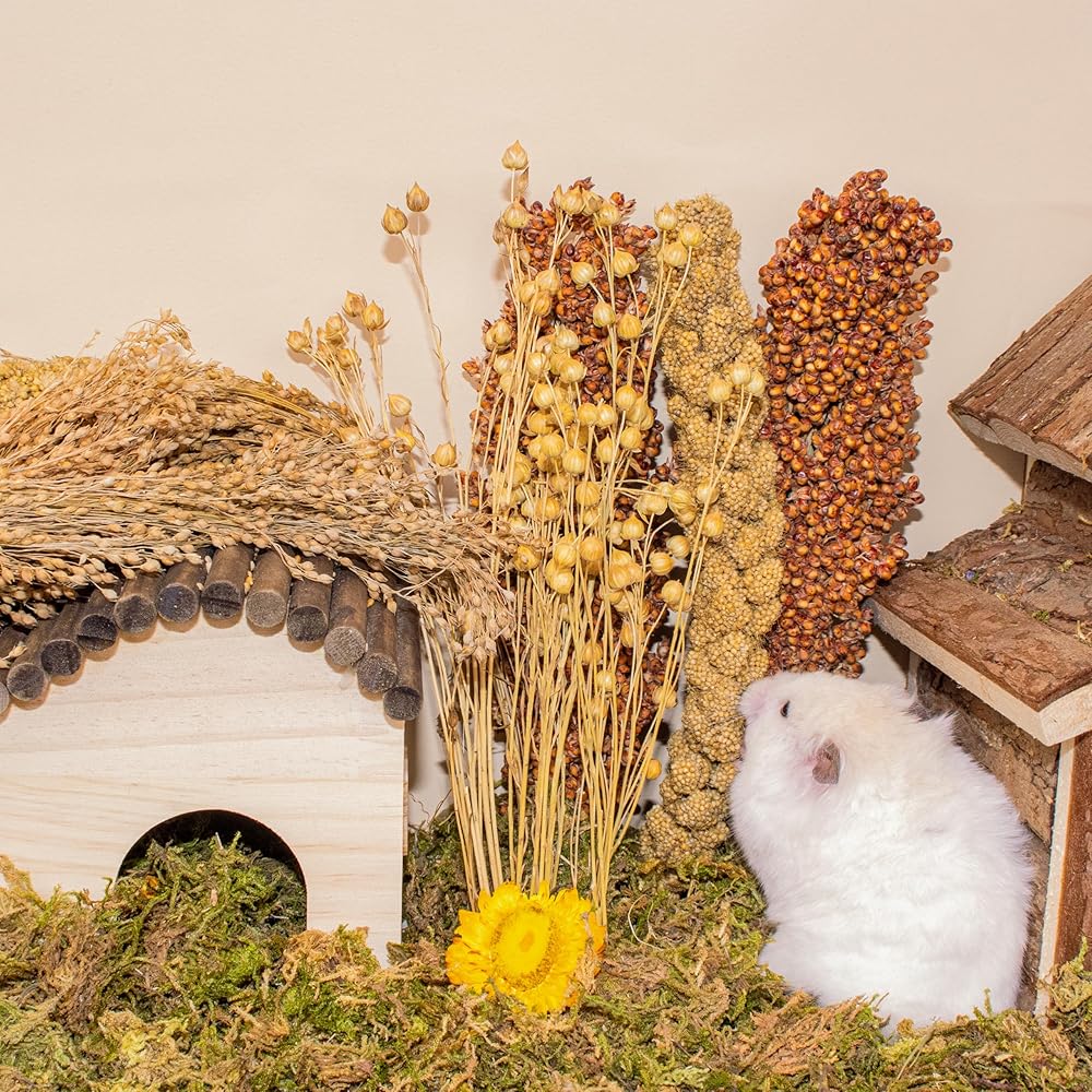 🐹[ما تحصل عليه]: 5 أونصة من بتلات الزهور + 25 قطعة من القمح + 1 أونصة من الكتان + 4 قطع من الدخن الأصفر + 1.4 أونصة من الدخن + 2 قطعة من كوز الذرة + 1 قطعة من سيقان الذرة البيضاء/الحمراء، مما يوفر أشياء آمنة وسعيدة وألعاب مضغ لحيواناتك الأليفة.