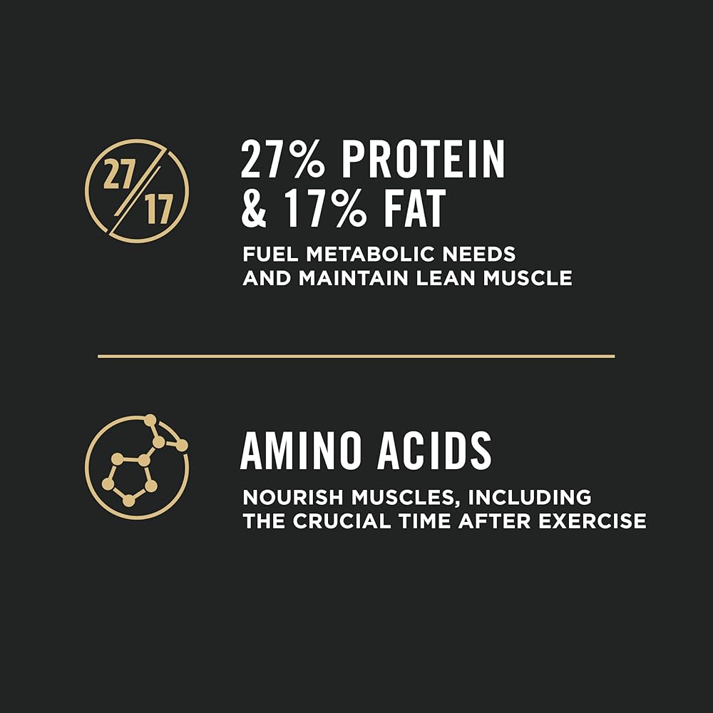 • 27 percent protein and 17 percent fat fuel metabolic needs and help maintain lean muscle