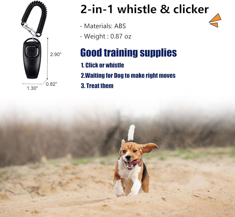 We also provide an 2-in-1 clicker (puppy training clicker, dog training clickers, pet training clicker, clicker training for dogs) and whistle (dog whistle for training, dog clicker for training, dog training clicker, puppy treats for training) for training purpose.