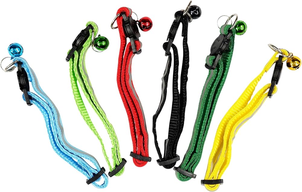 6pcs Reflective Cat Collar with Bell,Nylon Strip Breakaway Cat Collar Mixed Colors Puppy Collar