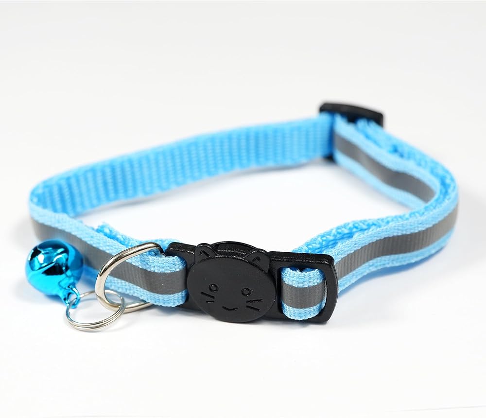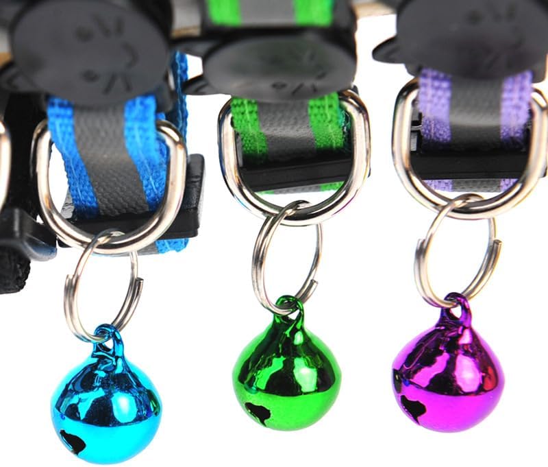 6 قطع عاكسة طوق القط مع الجرس، النايلون قطاع الانفصال طوق القط مختلط الألوان جرو طوق