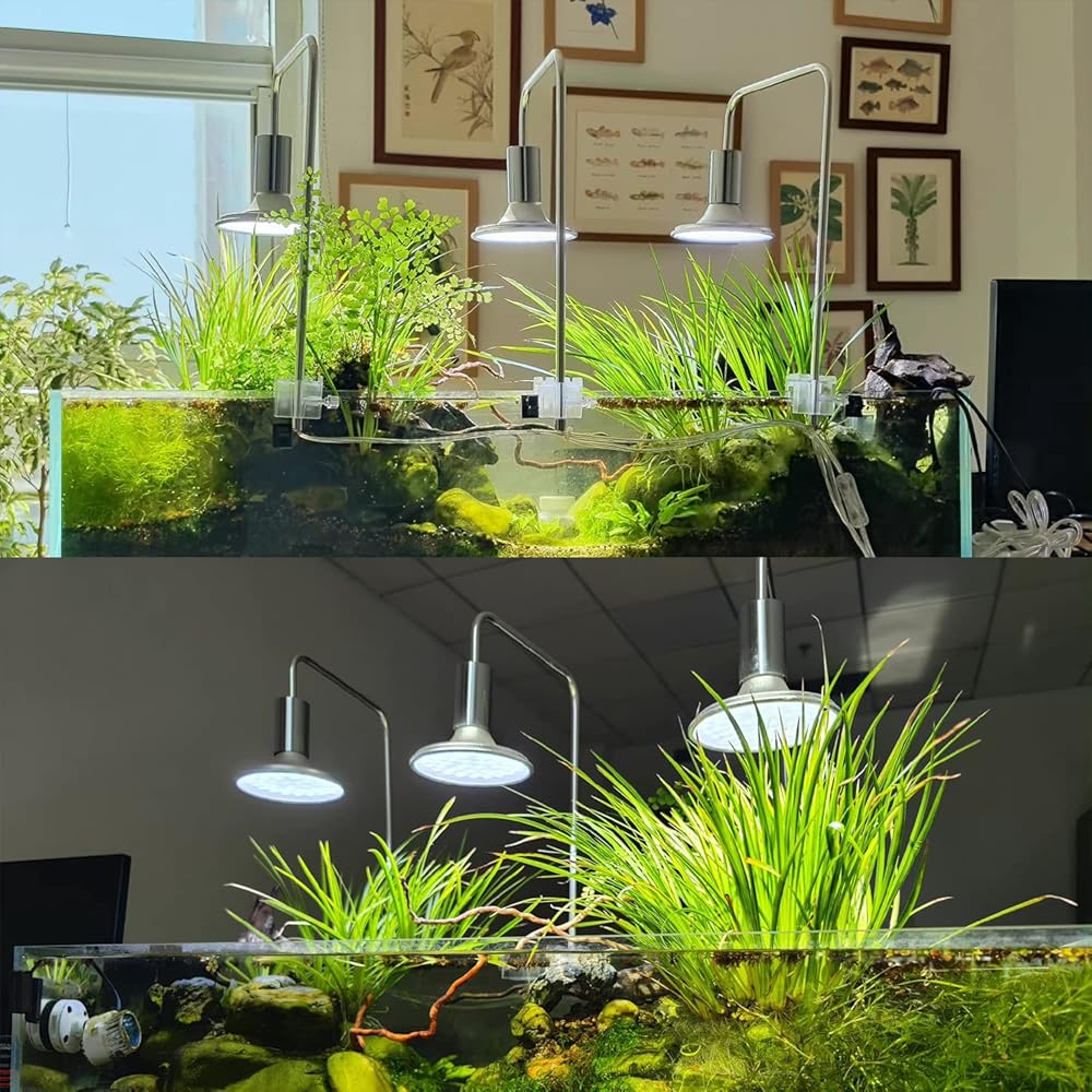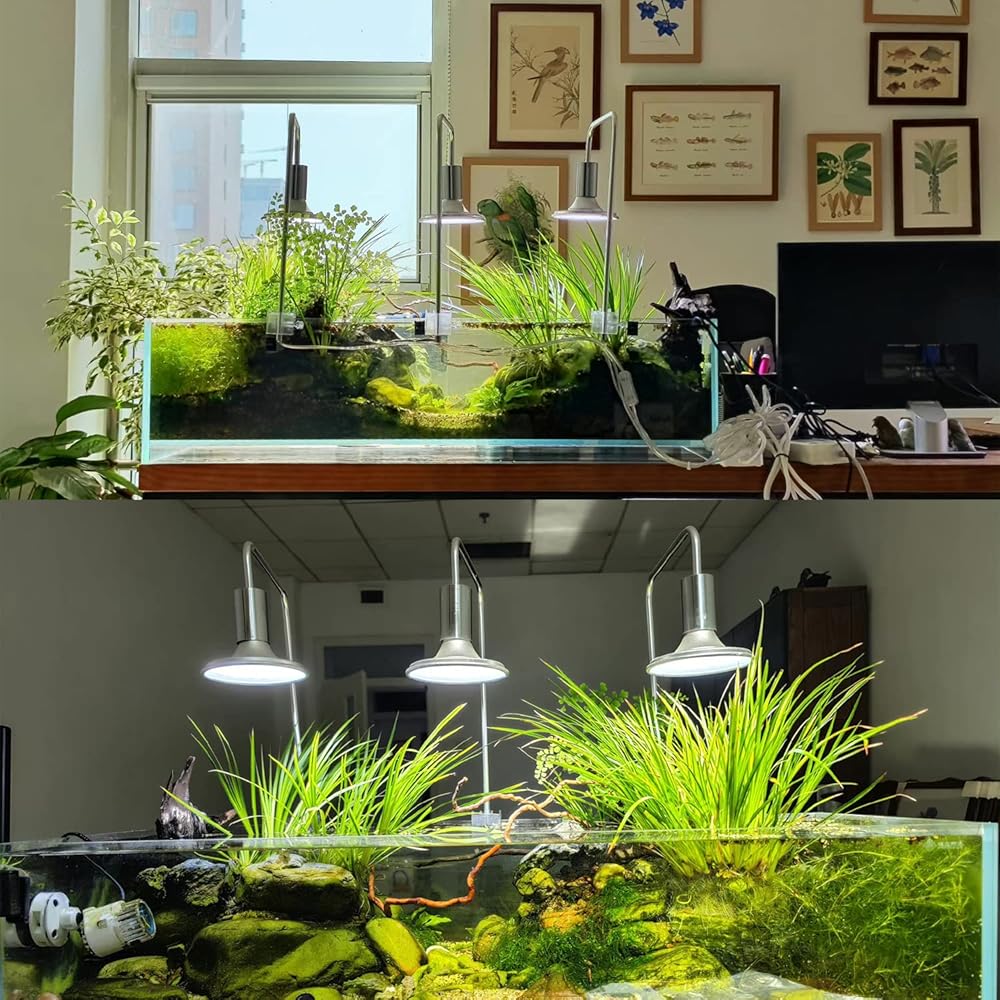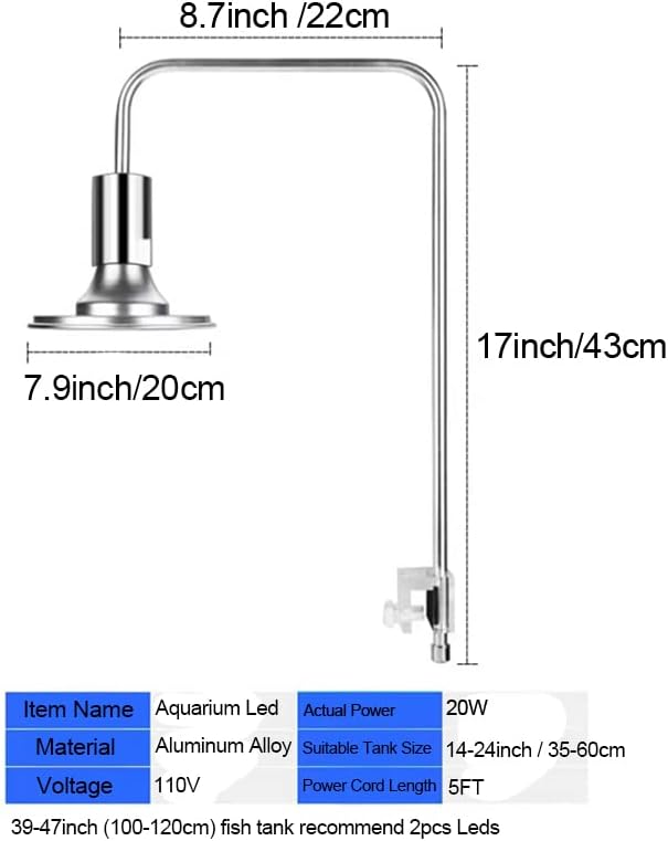 الحجم - مصباح حوض السمك هذا مناسب لخزان الأسماك 24 × 12 بوصة 30 × 12 بوصة سعة 20-30 جالون، الطاقة الفعلية 20 وات. مقاس المصباح 8×4 بوصة، مقاس العمود 17*8.7 بوصة