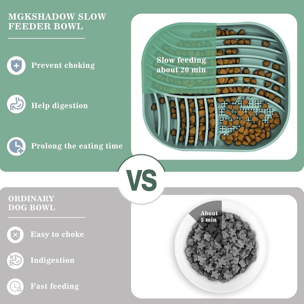 The design of the water ripples and sauce area increases the dog's resistance to eating and slows down the meal time by 10 times, preventing indigestion and choking due to fast eating and giving the dog a healthy eating habit.
