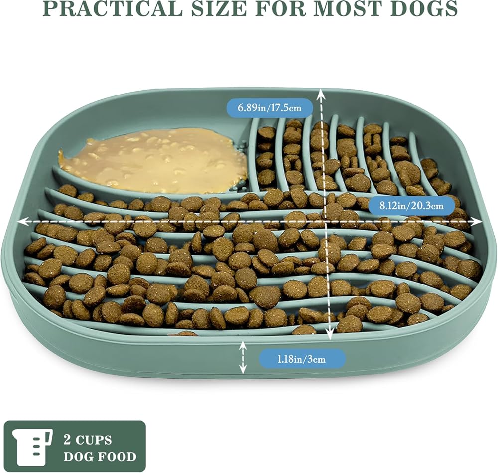 The size of 【the dog bowl slow feeder】can hold 2CUP about 8 ounces of dry dog food, which is suitable for most dogs' daily food intake. Larger dogs with large food needs can also be fed multiple times.