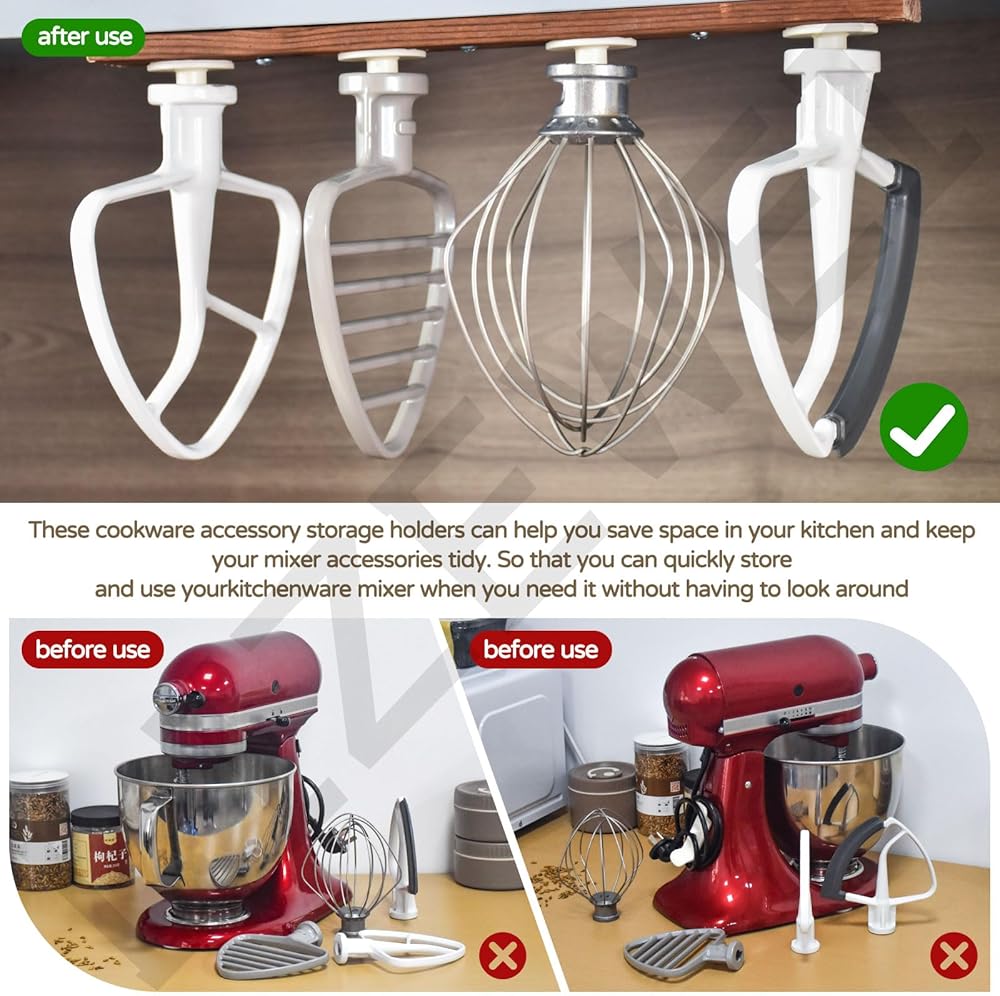 Storage Tools for Space: These cookware accessory storage holders can help you save space in your kitchen and keep your mixer accessories tidy. So that you can quickly store and use your kitchenware mixer when you need it without having to look around.