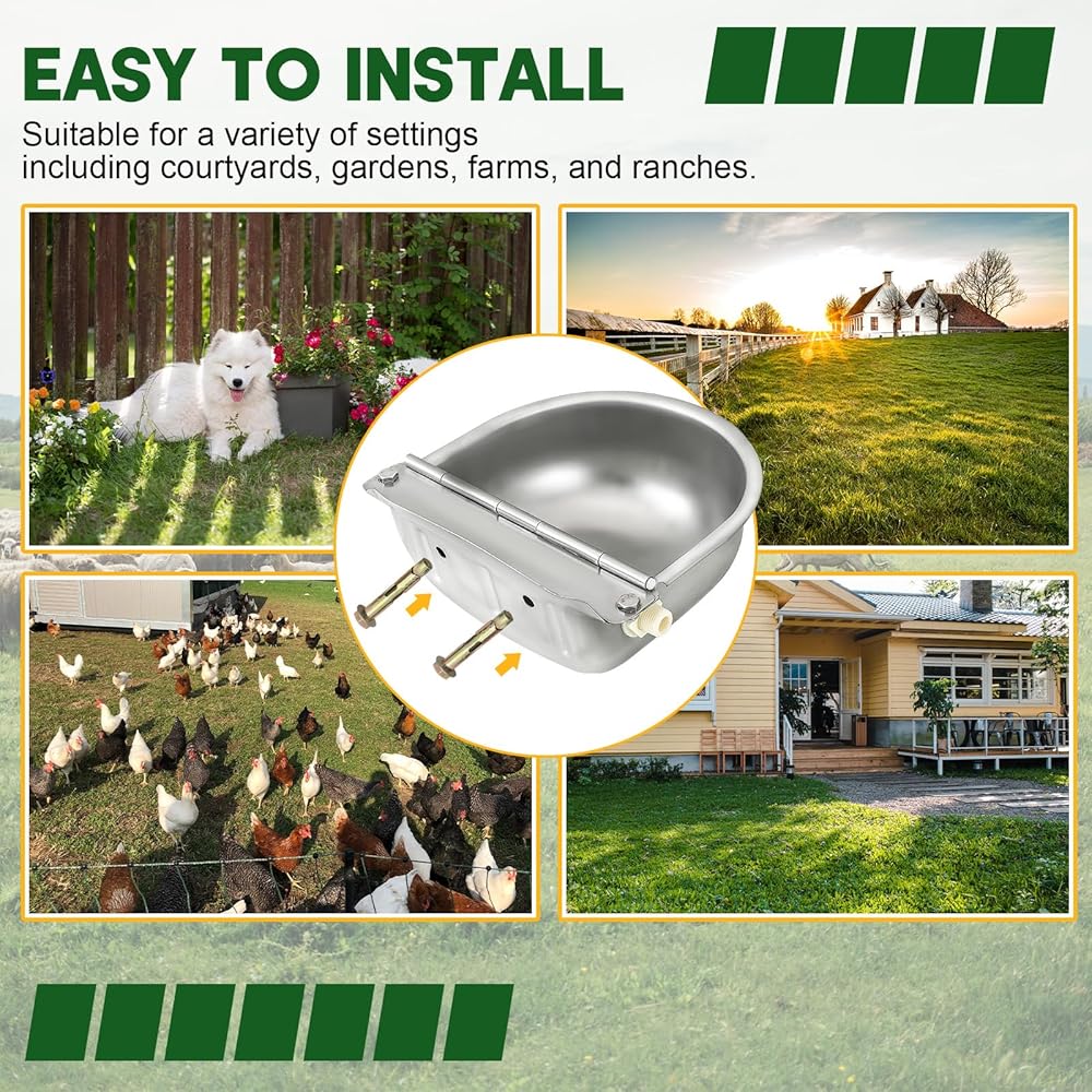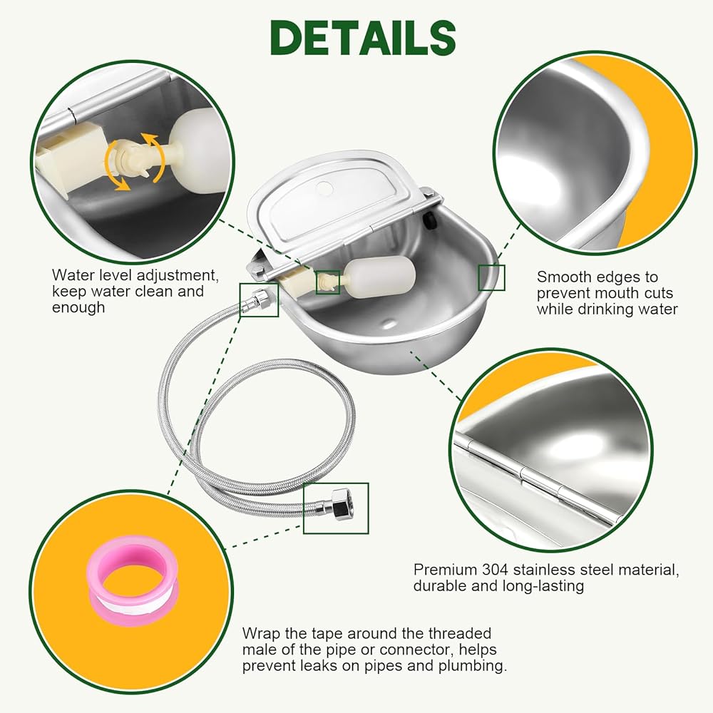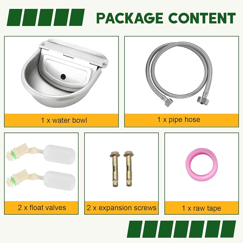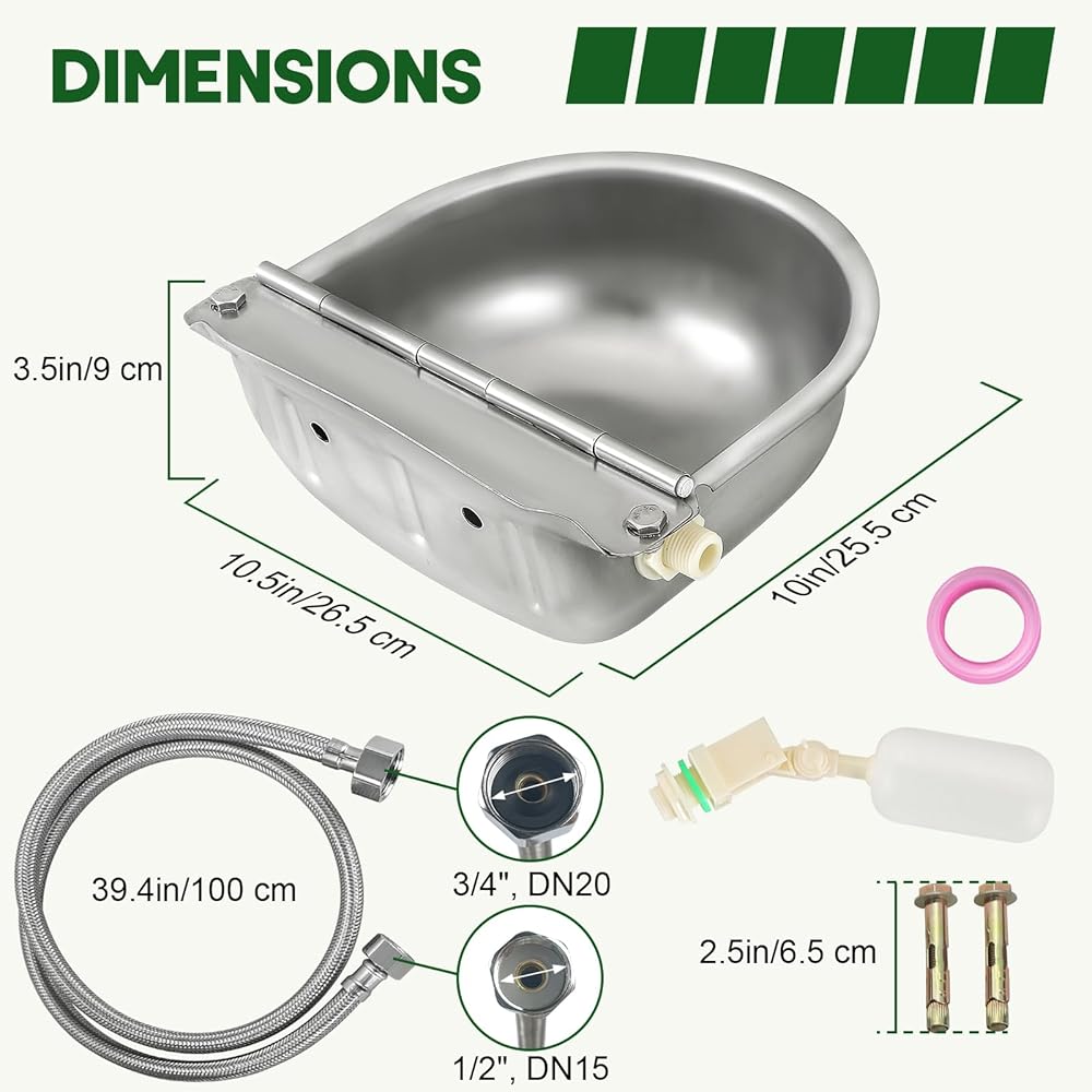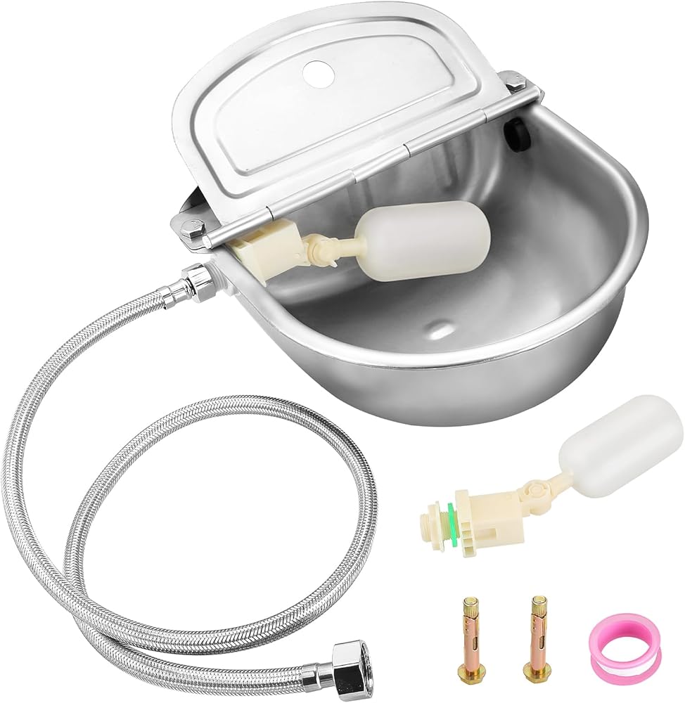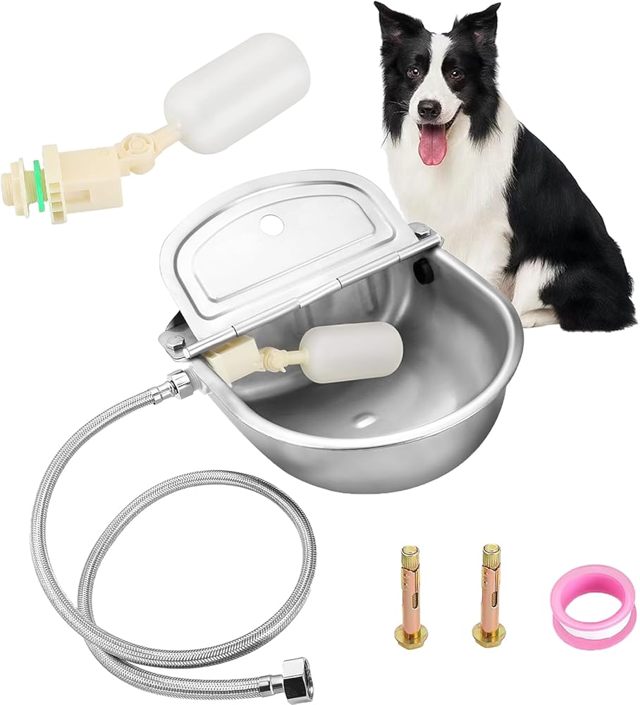 موزع وعاء مياه أوتوماتيكي من الفولاذ المقاوم للصدأ من MAOPINER، وعاء مياه شرب للكلاب، موزع مياه لحوض المياه للماشية، حوض ذاتي التعبئة مع صمامات تعويم وخرطوم أنابيب (بدون فتحة تصريف)
