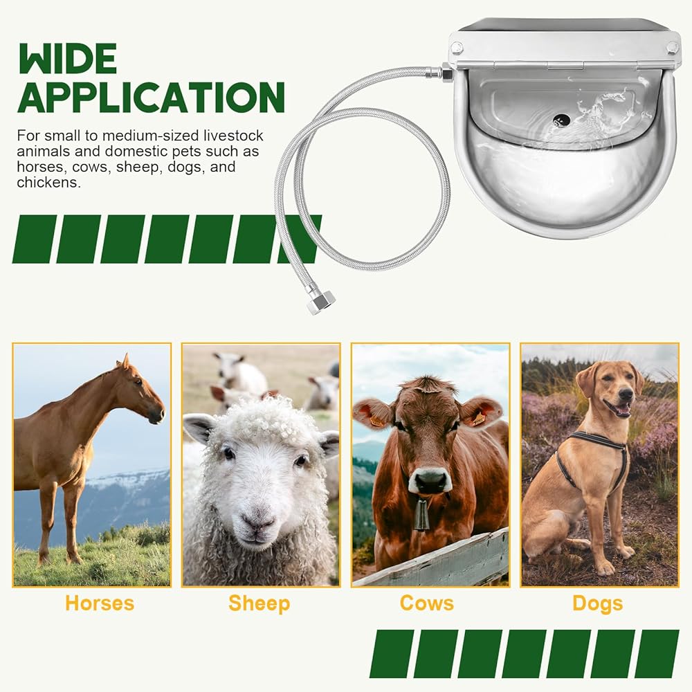 استخدامات متعددة: موزع المياه الحيواني مناسب لمجموعة متنوعة من الإعدادات بما في ذلك الساحات والحدائق والمزارع والمزرعة، ويلبي موزع المياه الأوتوماتيكي هذا احتياجات الترطيب لحيوانات الماشية الصغيرة والمتوسطة والحيوانات الأليفة المنزلية مثل الخيول والأبقار والأغنام. والكلاب والدجاج.