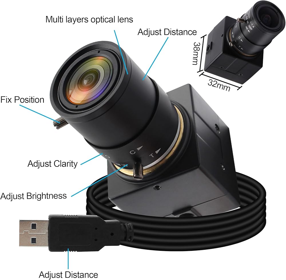 • اتصال متعدد الاستخدامات: من خلال واجهة USB 2.0، تتصل هذه الكاميرا بأجهزتك بسلاسة، مما يجعلها مثالية لتطبيقات مثل الطباعة ثلاثية الأبعاد ومسح الرمز الشريطي ومسح رمز الاستجابة السريعة.