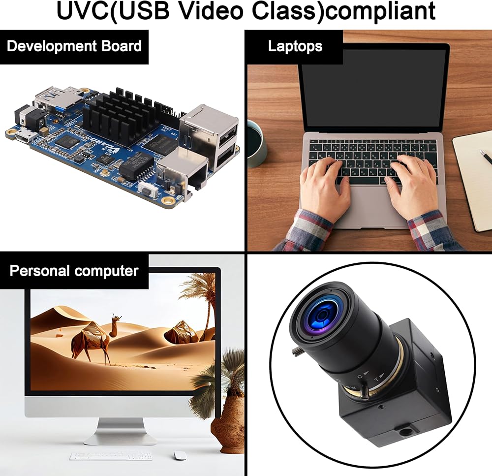 • التوافق مع UVC: الكاميرا متوافقة مع UVC (فئة فيديو USB)، مما يضمن التوافق مع مجموعة واسعة من أنظمة التشغيل والبرامج دون الحاجة إلى برامج تشغيل إضافية.