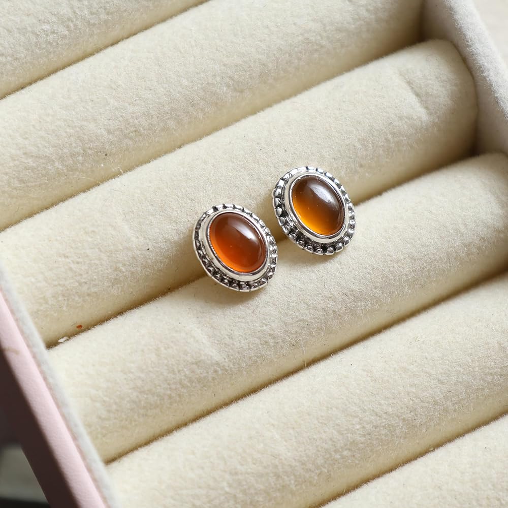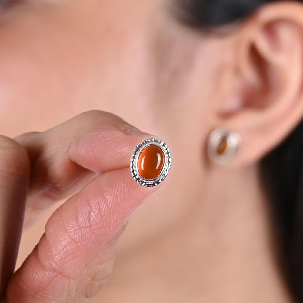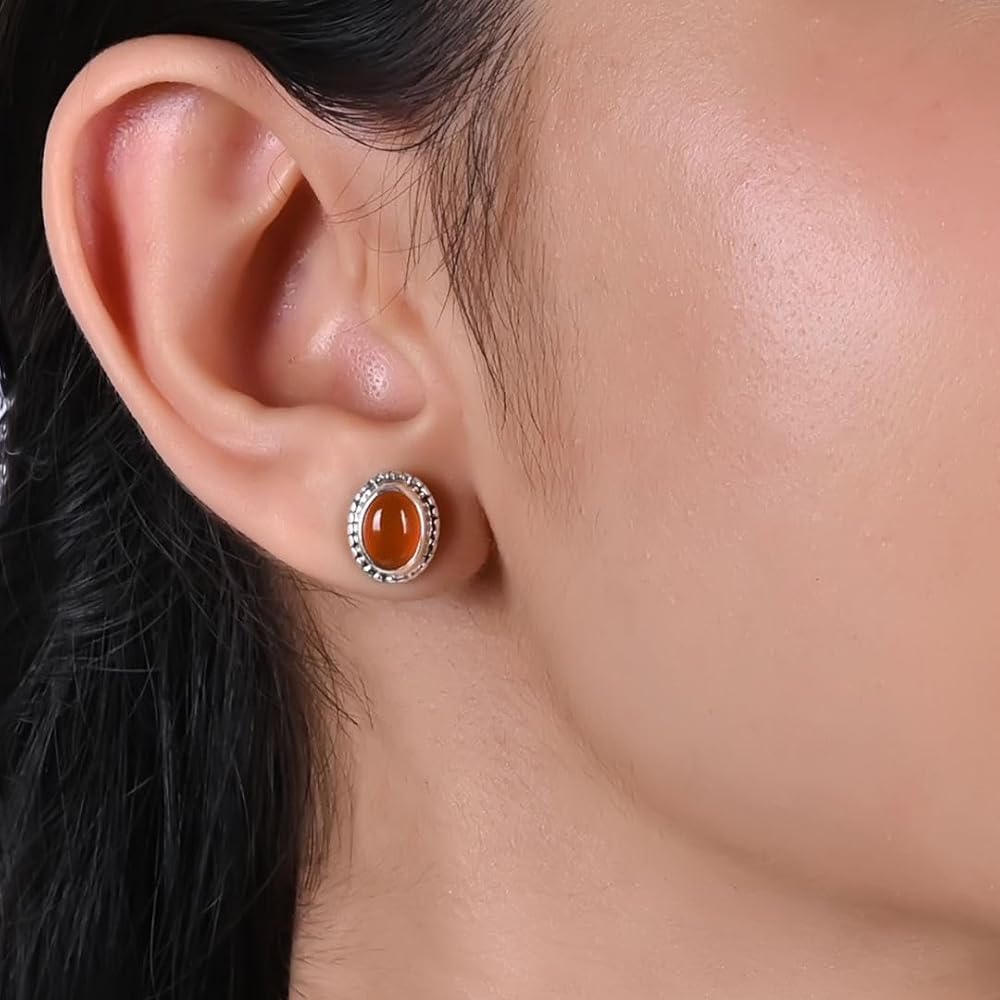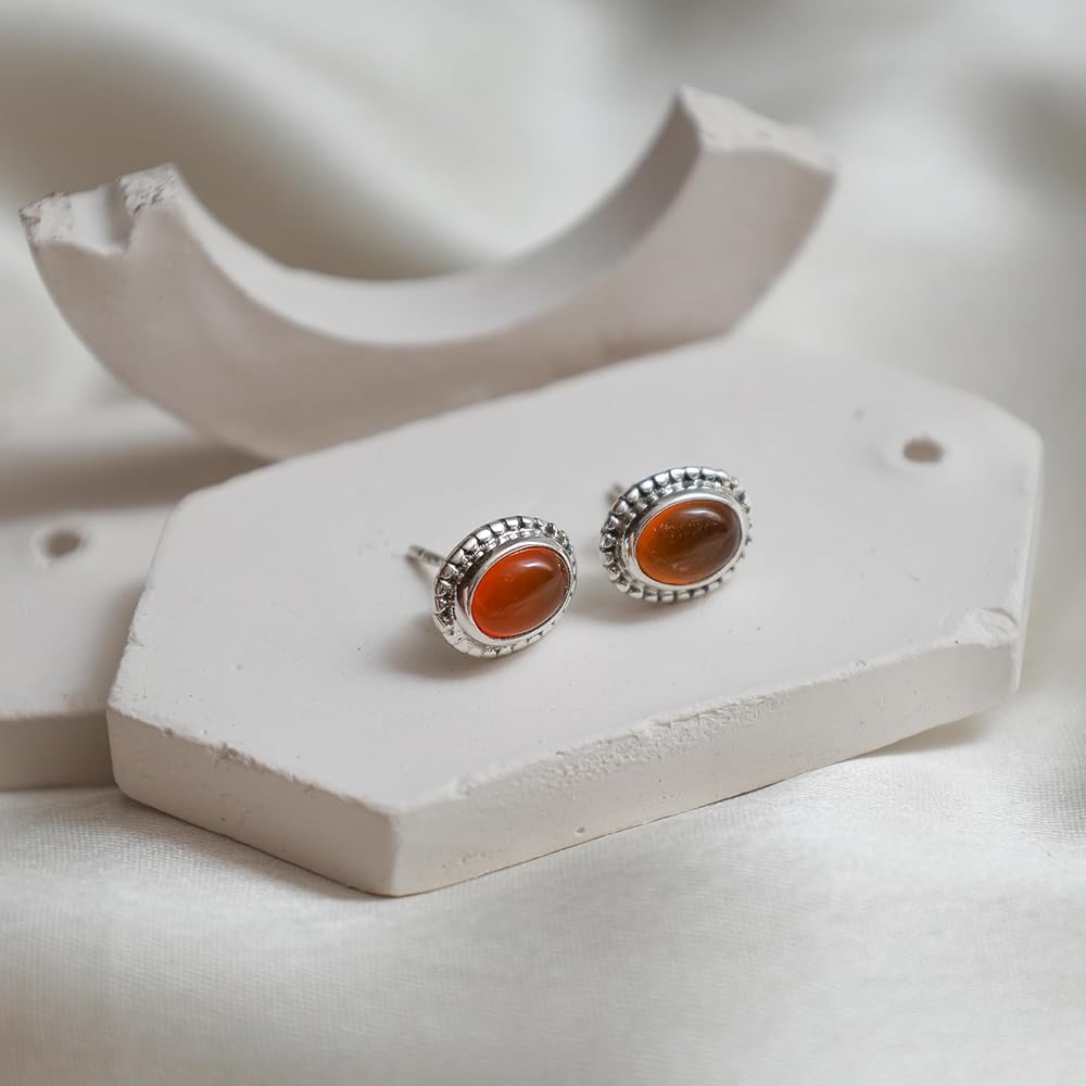 Stud Earrings For Women : These stud earrings offer a versatile and chic addition to your jewelry collection. The oxidized silver setting provides a vintage-inspired charm, while the carnelian gemstone brings a fresh pop of color. Ideal for both everyday wear and special occasions, these earrings blend effortlessly with any outfit.