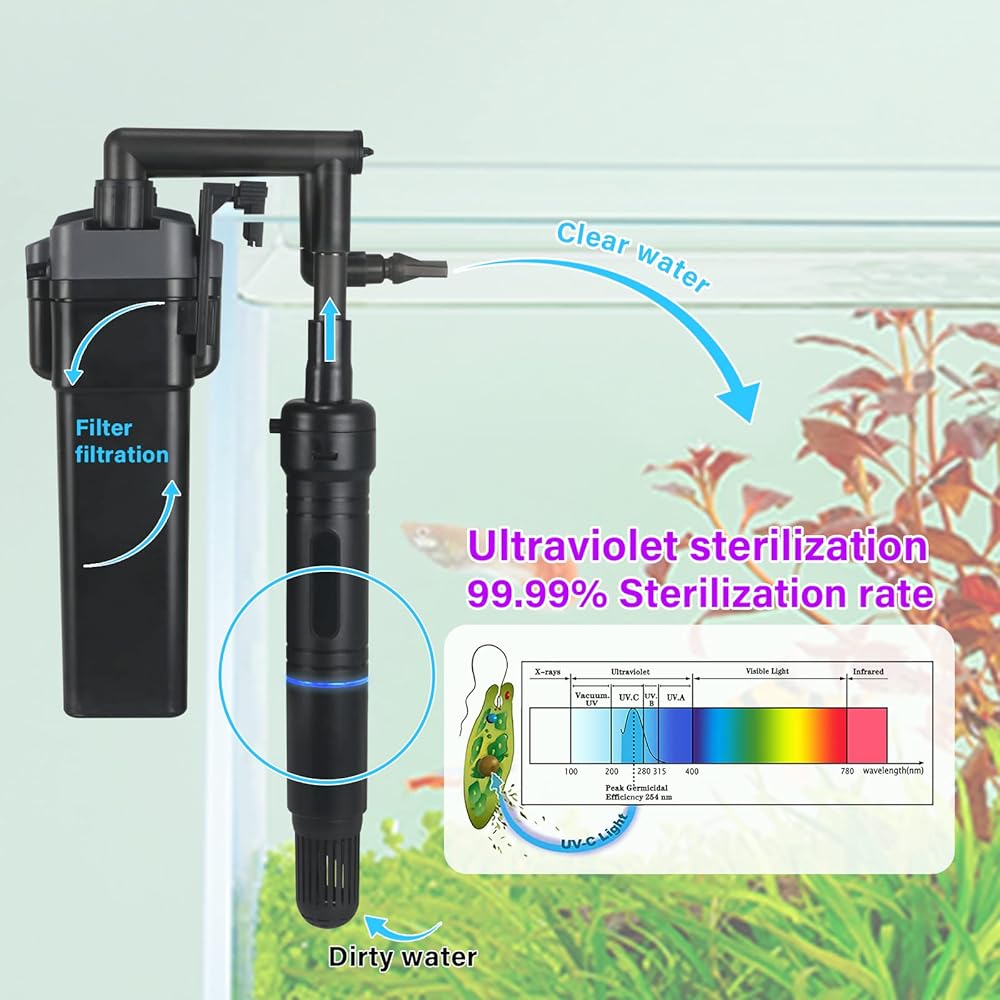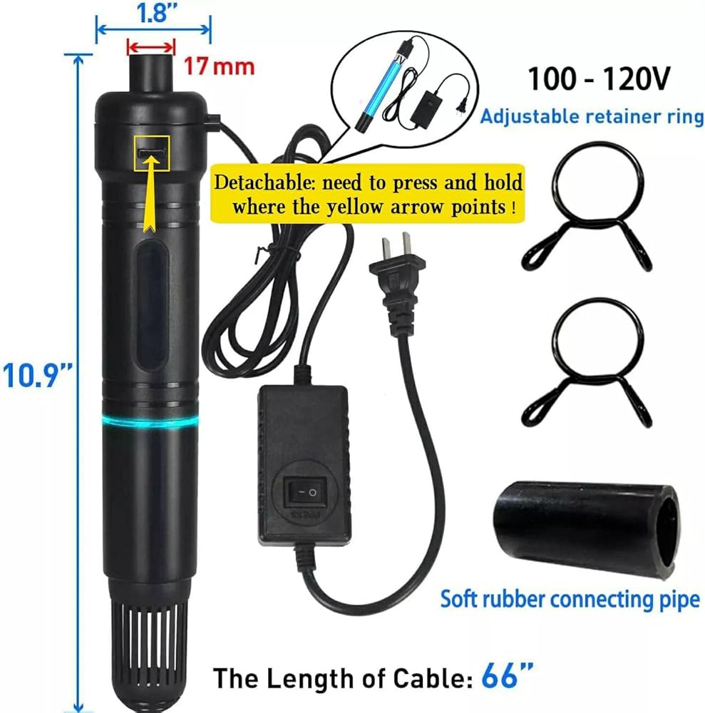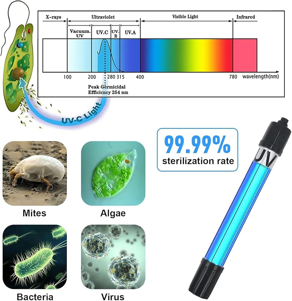 مصباح شفاف لتنظيف مياه حوض السمك، آلة تنظيف خضراء مع غلاف حماية يناسب خزان الأسماك سعة 20-200 جالون، ضوء مقاوم للماء لمرشح مضخة البركة 5 وات 254 نانومتر (المضخة غير متضمنة، المصباح داخل الغلاف)