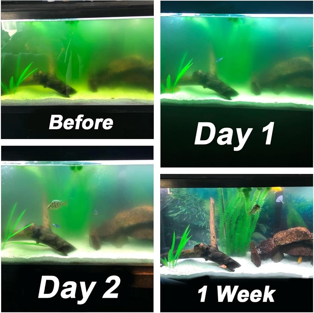 【ملاحظة/مهم جدًا】يستغرق الأمر عملية لتنظيف الطحالب الخضراء، يرجى التحلي بالصبر لمدة 2-5 أيام. يرجى قياس حجم حوض السمك الخاص بك ومقارنته بحجم منتجاتنا.