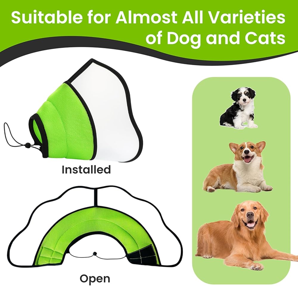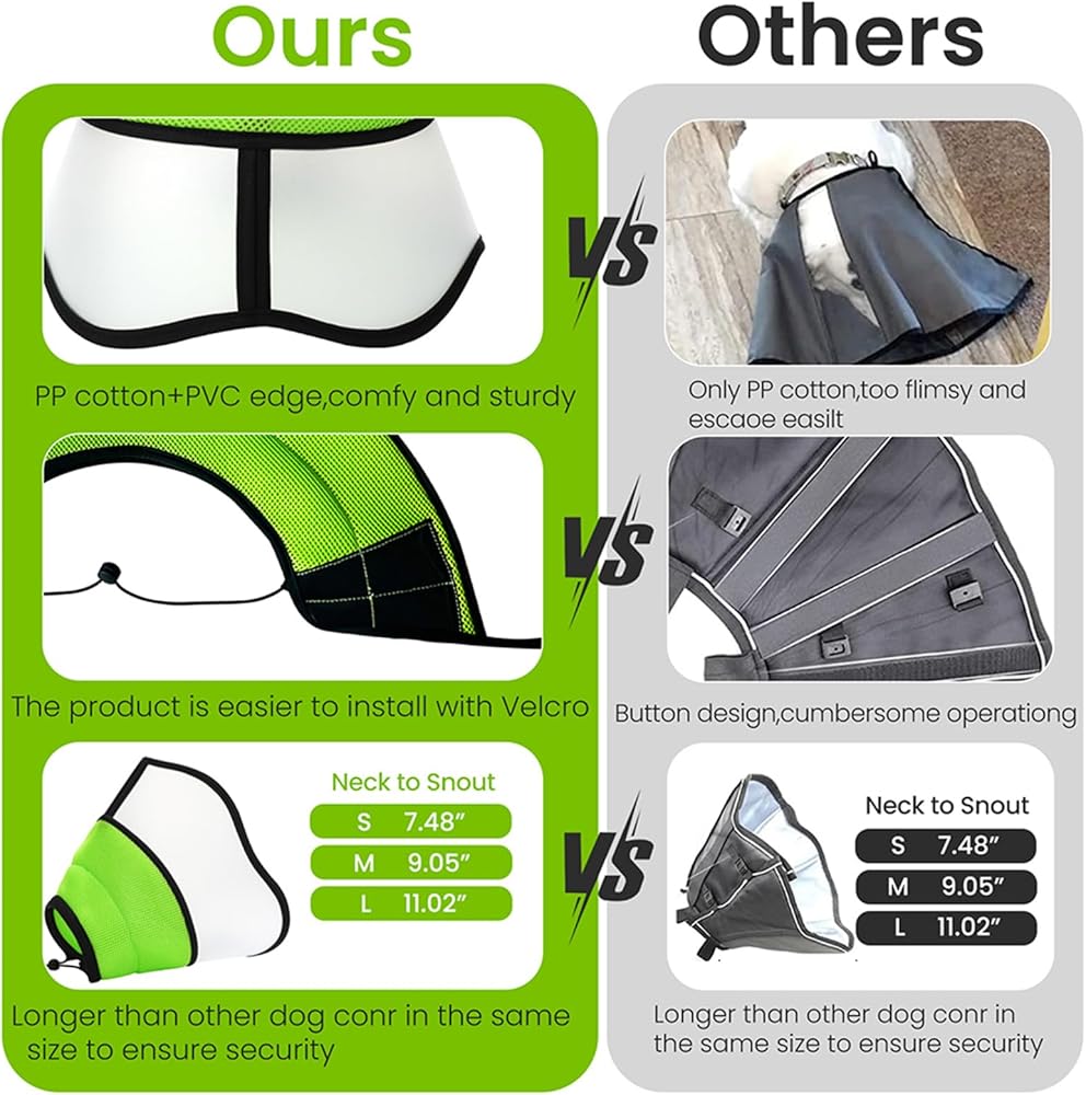 【Soft& Comfortable】Compared with other plastic cone, our collar is more lightweight and comfortable for daily wear, and it does not affect your pet' s vision or other activities. With this collar your dog can eat, drink, sleep, walk, and move around comfortably.