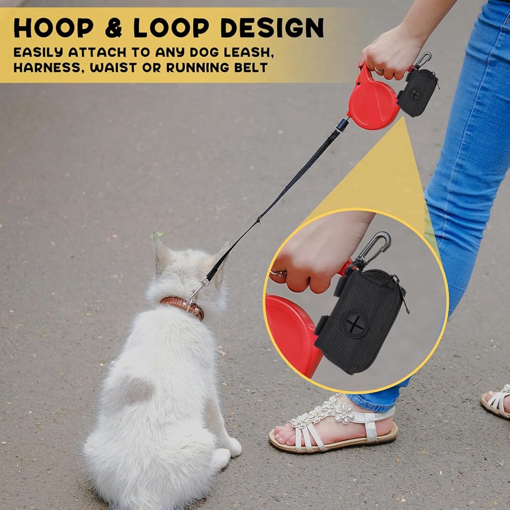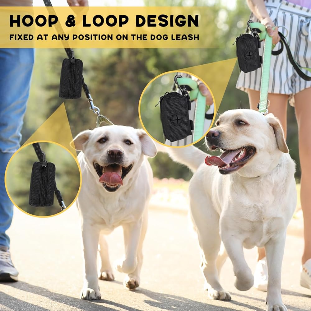 Reliable Material: dog poop bag dispenser is constructed by 600D oxford fabric, waterproof to prevent the garbage bag from getting wet and making it inconvenient to use; This dog waste bag holder is made to last and it will never rupture, break or constantly fall apart like plastic holders