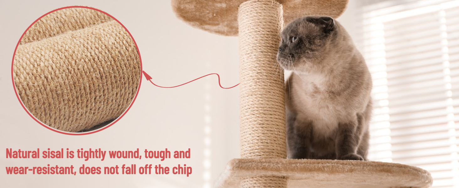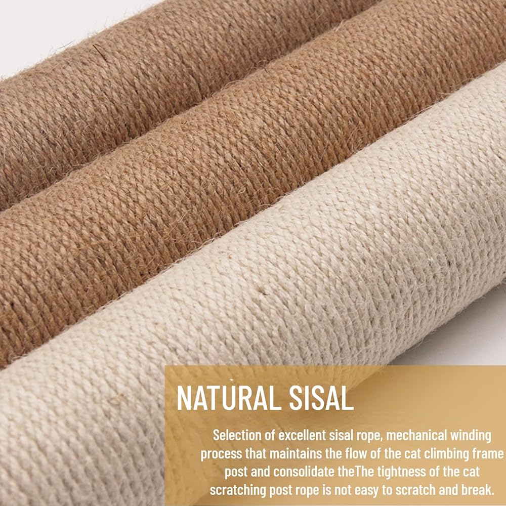 【مادة السيزال الطبيعية】: يستخدم الجزء البديل لشجرة القطط حبل سيزال ممتاز، عملية لف ميكانيكية تحافظ على تدفق عمود إطار تسلق القطط وتعزز إحكام حبل عمود خدش القطط، قوي وليس من السهل خدشه. أنبوب سميك من الورق المقوى لا يسقط، مثالي للعب اليومي للقطط.