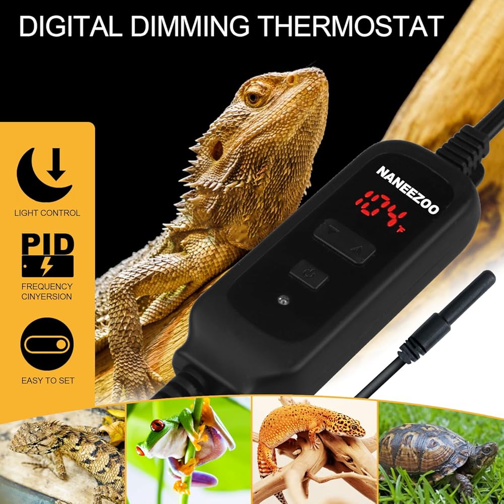 【استخدامات متعددة】يمكن ربط منظم حرارة الزواحف NANEEZOO بمصابيح حرارية وحصيرة حرارية وكابل حراري. مناسبة لتربية الزواحف والبرمائيات أو الفقس أو أي شيء آخر يحتاج إلى التحكم في درجة الحرارة. أقصى حمل للإخراج (300 وات)، جهد الإدخال (110 فولت - 240 فولت).
