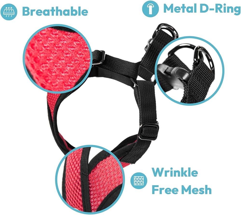 مرفق المقود - حلقة معدنية على شكل حرف D عالية الجودة لمزيد من الأمان لتحمل اختبار الزمن. [ملاحظة: عند اختيار المقاس الصحيح، ننصح بقياس الجزء الأكبر من صدر الكلب ومتابعة مقاس الصدر أولاً وقبل كل شيء. إذا كان بين الأحجام، يرجى حجم أكبر]