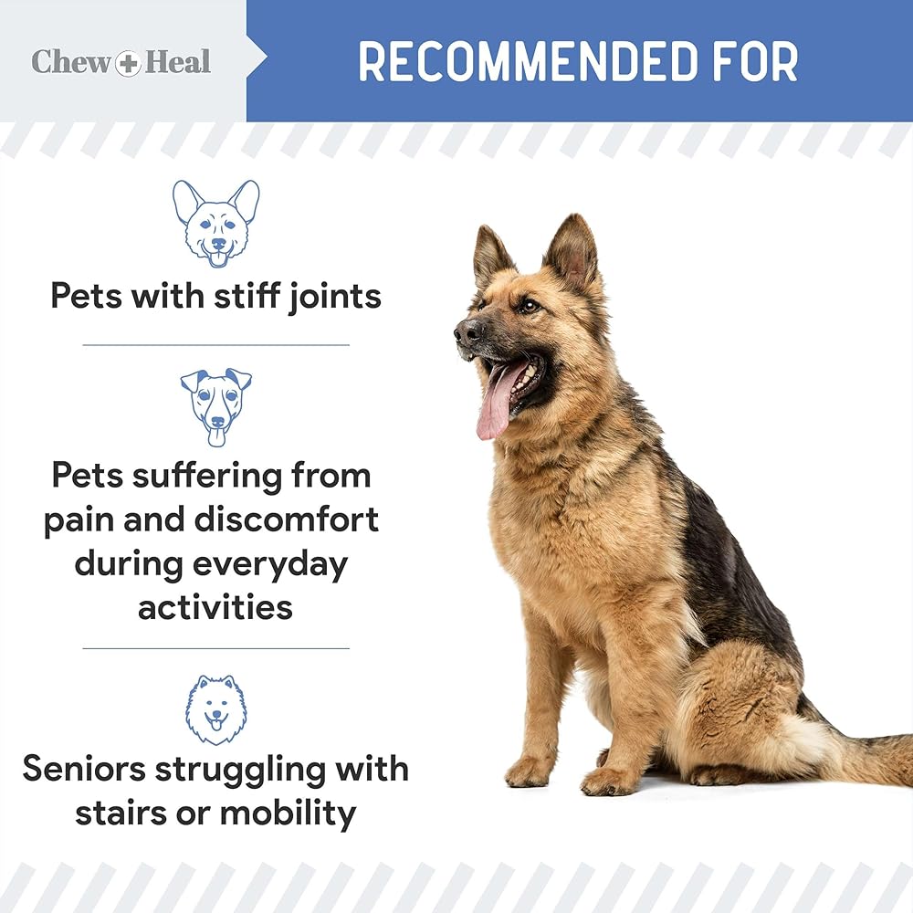 مكمل الجلوكوزامين والكوندرويتين الخاص بالكلاب مخصص للكلاب الكبيرة والكلاب الصغيرة وحتى السلالات الضخمة! صنع في الولايات المتحدة الأمريكية.