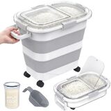 سعة كبيرة جدًا - تم تصميم حاوية طعام الكلاب لتكون قابلة للطي ويمكن تعديلها لتناسب الحجم لتخزين حاويات طعام أصدقائك المحبوبين للطعام الجاف. الحجم غير المطوي: 16x10x8 بوصة، مناسب لتخزين 10-13 رطل من طعام الكلاب. الحجم المطوي: 10x16x3 بوصة، التصميم القابل للطي يجعلها توفر المساحة.