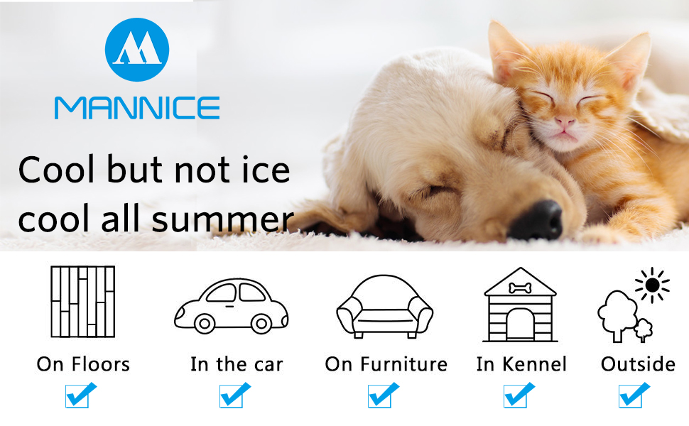 • ✿ سهلة الاستخدام: تختلف عن معظم سجادات بيوت الحيوانات الأليفة الموجودة في السوق، فلا حاجة إلى ماء أو كهرباء أو تبريد، فقط لوضع بساط التبريد على الأرض أو الأريكة وإبقاء الحيوان الأليف عليها، يمكن لحيوانك الأليف أن يبدأ في الاستمتاع بالسعادة. وقت. إنه حل بسيط لتجنب ارتفاع درجة الحرارة والجفاف للكلاب الساخنة التي تلهث والتي تعاني في طقس الصيف. يمكن لبساط تبريد الحيوانات الأليفة هذا تهدئة الكلاب والقطط عند ملامستها لمدة تصل إلى 3 ساعات، مما يوفر مكانًا رائعًا لكلبنا على مدار العام.