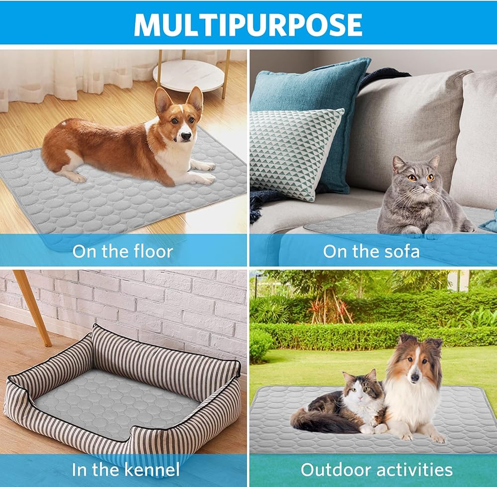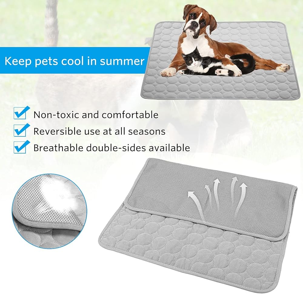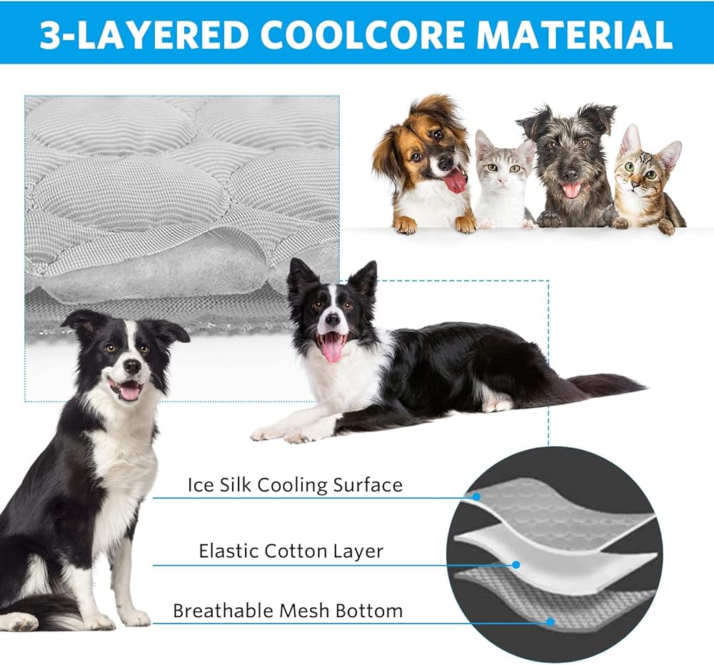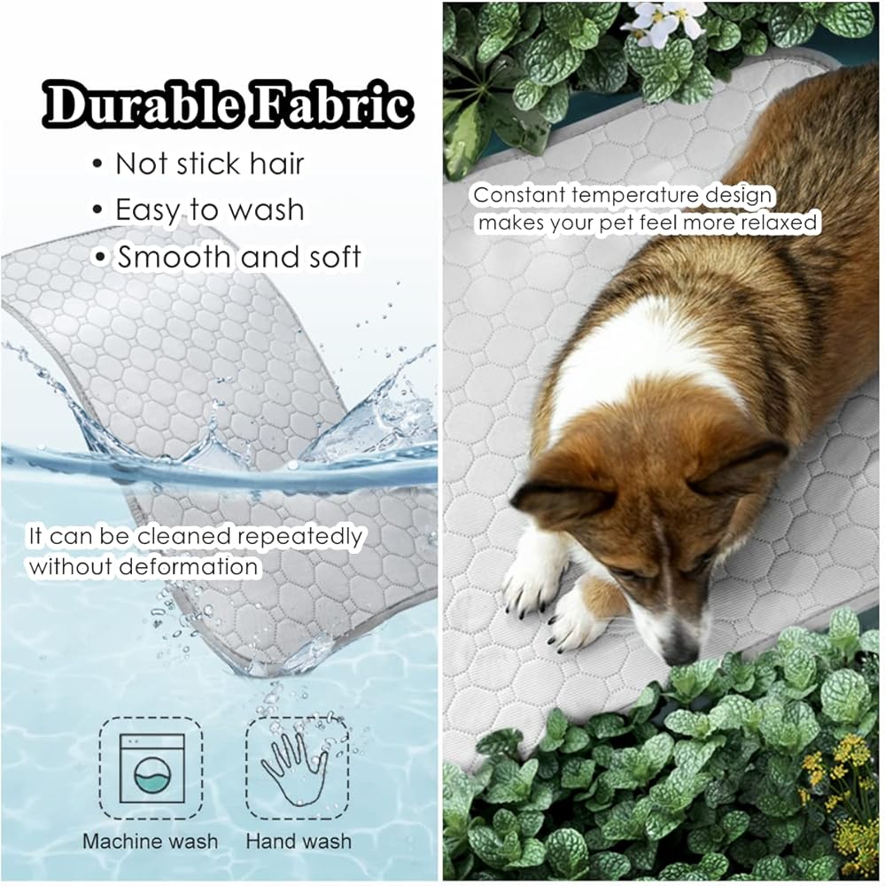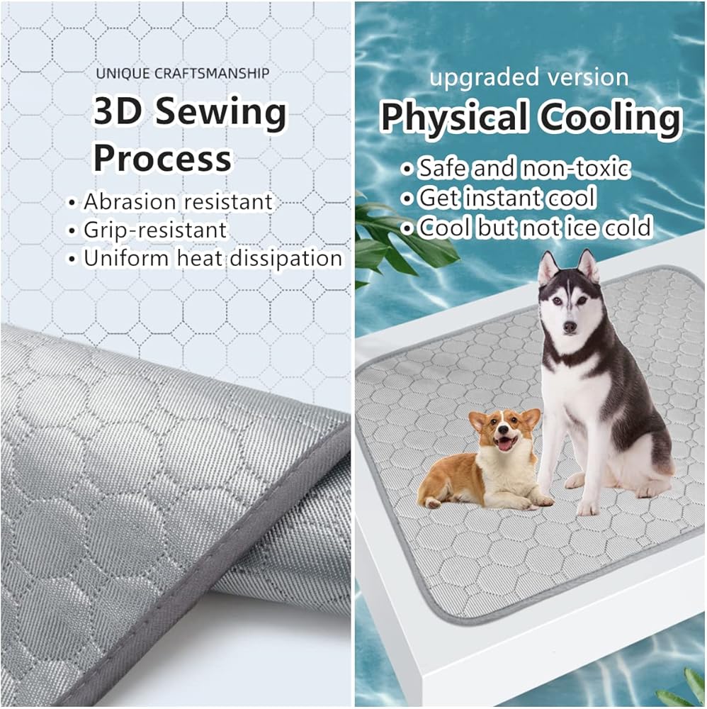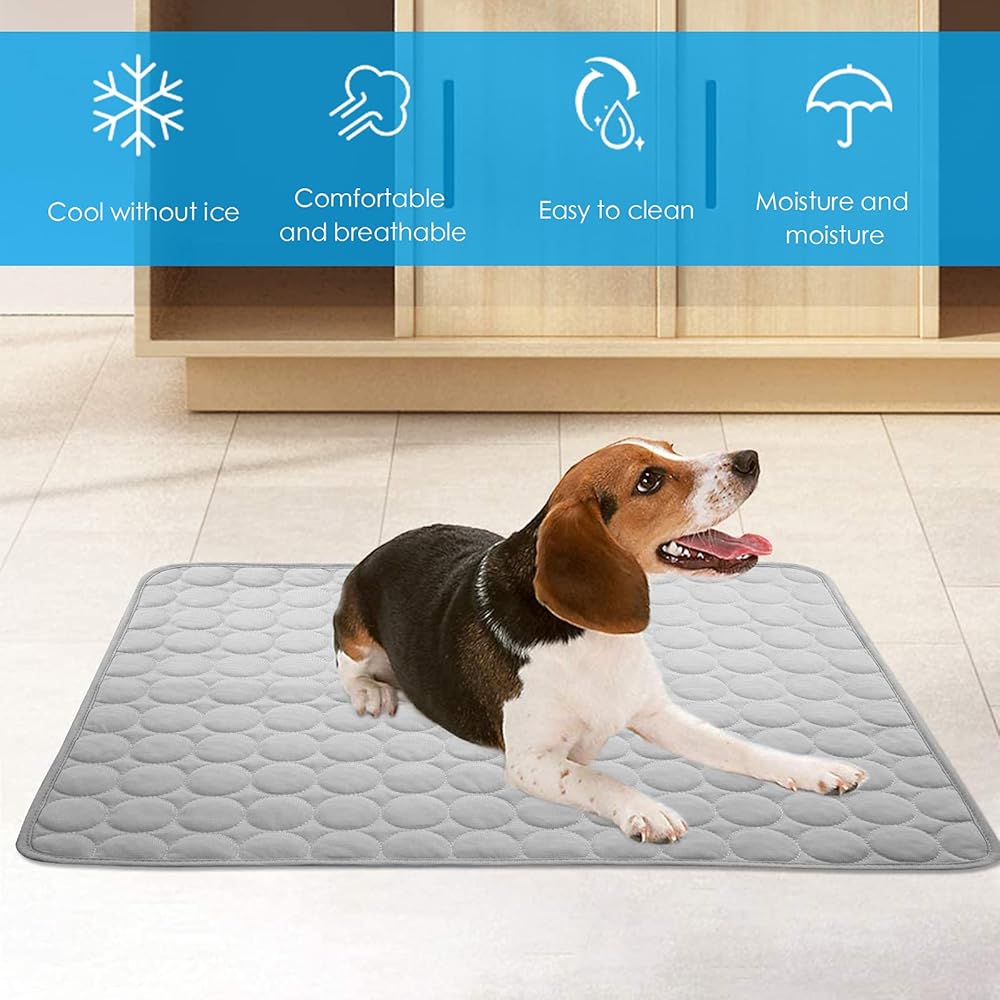 بساط تبريد للكلاب، بساط تبريد للحيوانات الأليفة للكلاب، لا يحتاج إلى ماء أو كهرباء، وسادة تبريد للكلاب لبيوت الكلاب والأقفاص والسيارات، بساط تبريد من الحرير الجليدي الداخلي والخارجي للكلاب الكبيرة جدًا والقطط والحيوانات
